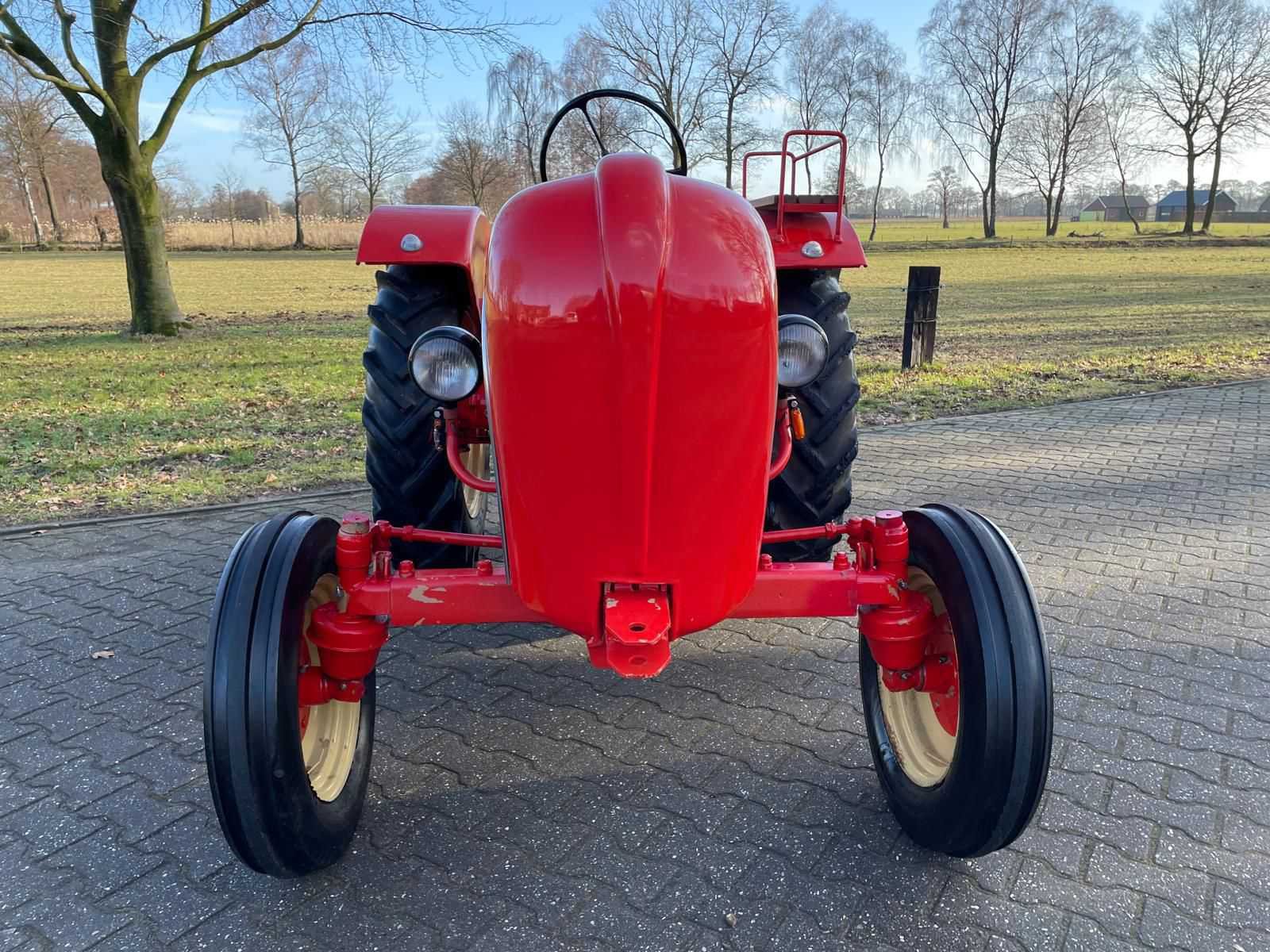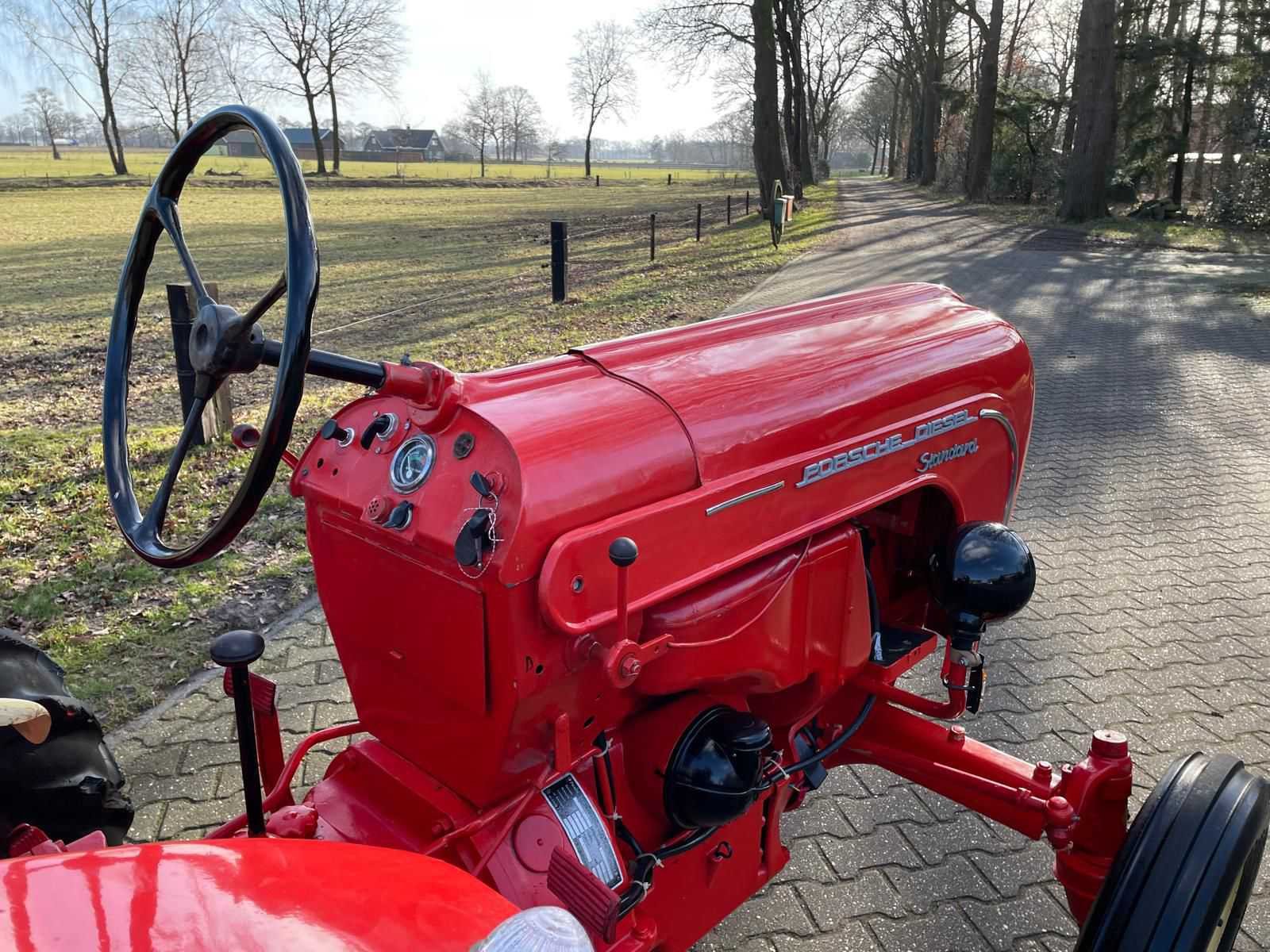 Porsche Diesel Standard 218H oldtimer tractor <strong>Specificaties:</strong> Merk: Porsche Diesel Model: Standard 218H Brandstof: diesel Kenteken: aanwezig Motor- en chassisnummer: gelijklopend <strong>Voorzien van:</strong> Technisch gereviseerde motor (2020) Nieuwe pakkingen Nieuwe lagers Nieuwe keringen <strong>Bijzonderheden:</strong> Start, rijdt en remt goed Lakwerk in nette staat Originele uitvoering Merk: Porsche Type: Standard 218H Bouwjaar: 1960 Motorvermogen (kW): 14kW Afgelezen urenstand: 678 Bandenmaat voor: 550-16 Eigen gewicht: 1500kg Totale afmeting L: 3000mm Totale afmeting Breedte: 1800mm Totale afmeting Hoogte: 1900mm