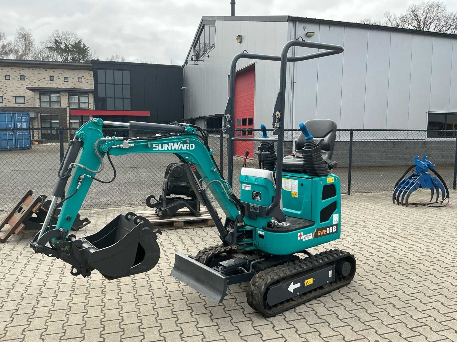 Voorzien van; 2 Graafbakken Merk: Sunward Type: SWE08B Bouwjaar: 2024 Serienummer: SWE08B03479 Motorvermogen (kW): 7kW Rups breedte: 180mm Afgelezen urenstand: 11