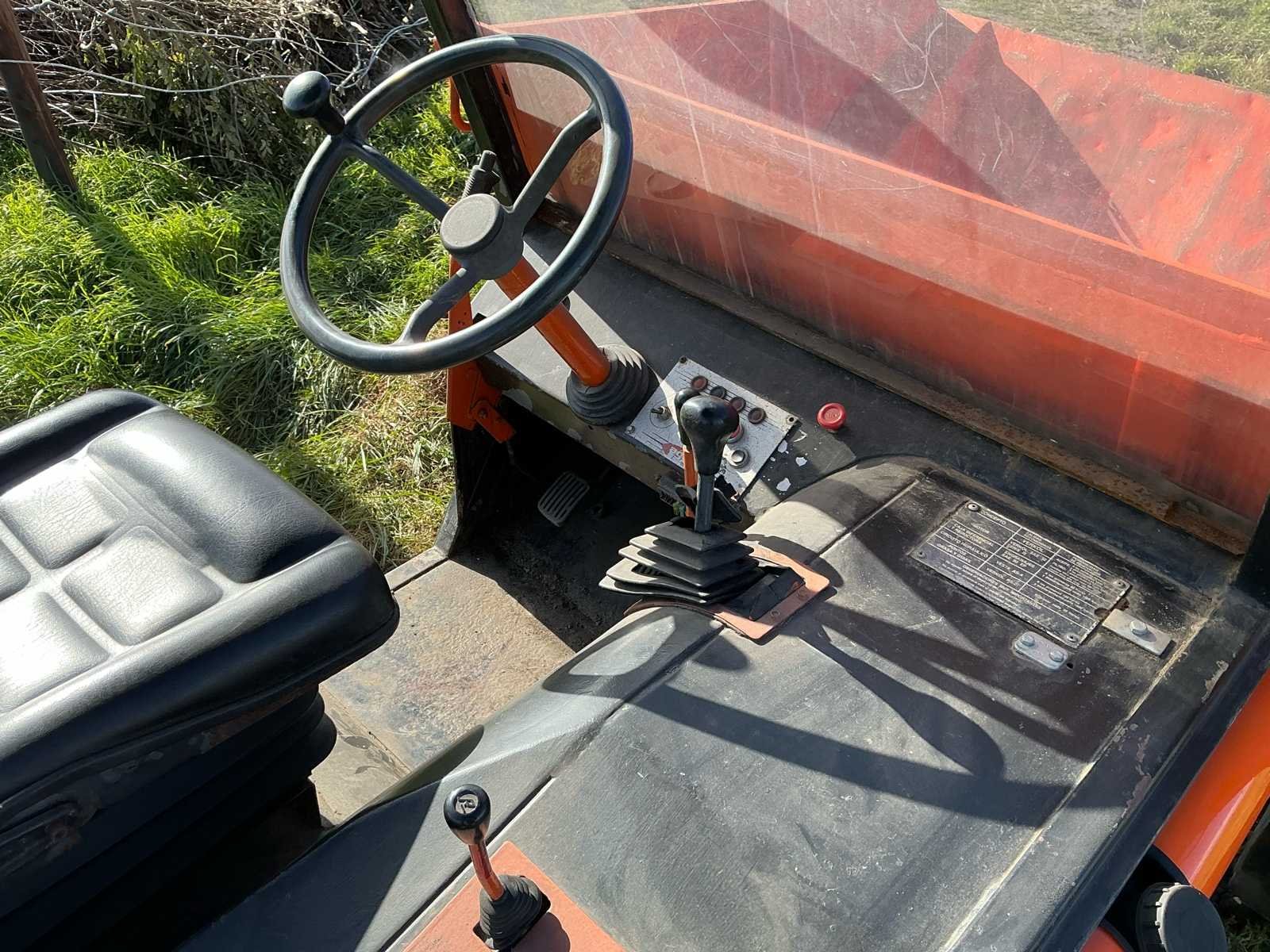 Voorzien van: 4 versnellingen, beschermkooi, kantelbare laadbak, Deutz 1cilinder motor. Kenteken THL32H Merk: Agria Type: DH-15 Serienummer: 155101 Bouwjaar: 2003 Merk motor: Deutz Aantal cilinders: 1 Brandstof: Diesel