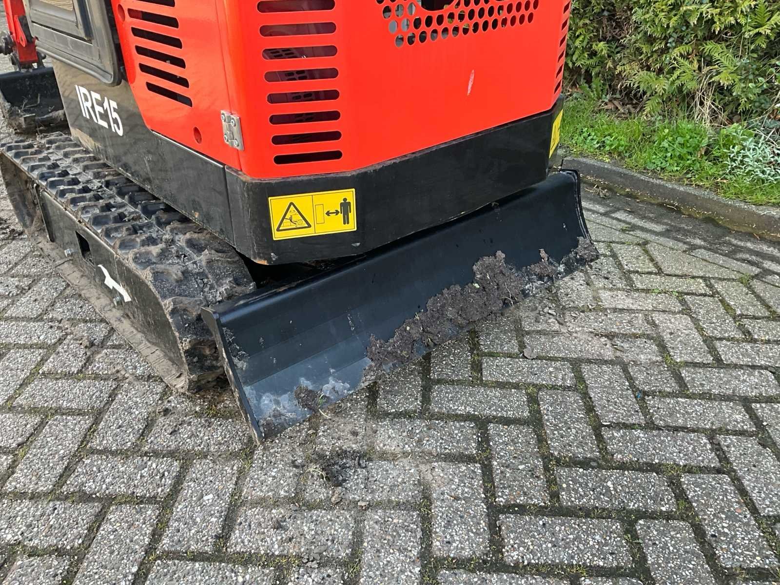 Voorzien van hydraulisch schuifbord; toolbox; Merk: IRE Type: 15 Bouwjaar: 2025 Serienummer: VK2410046030 Bedrijfsgewicht: 900kg Graafbak afm. b: 430mm Rups breedte: 180mm Afgelezen urenstand: 383 Totale afmeting L: 2300mm Totale afmeting Breedte: 1000mm Totale afmeting Hoogte: 2200mm