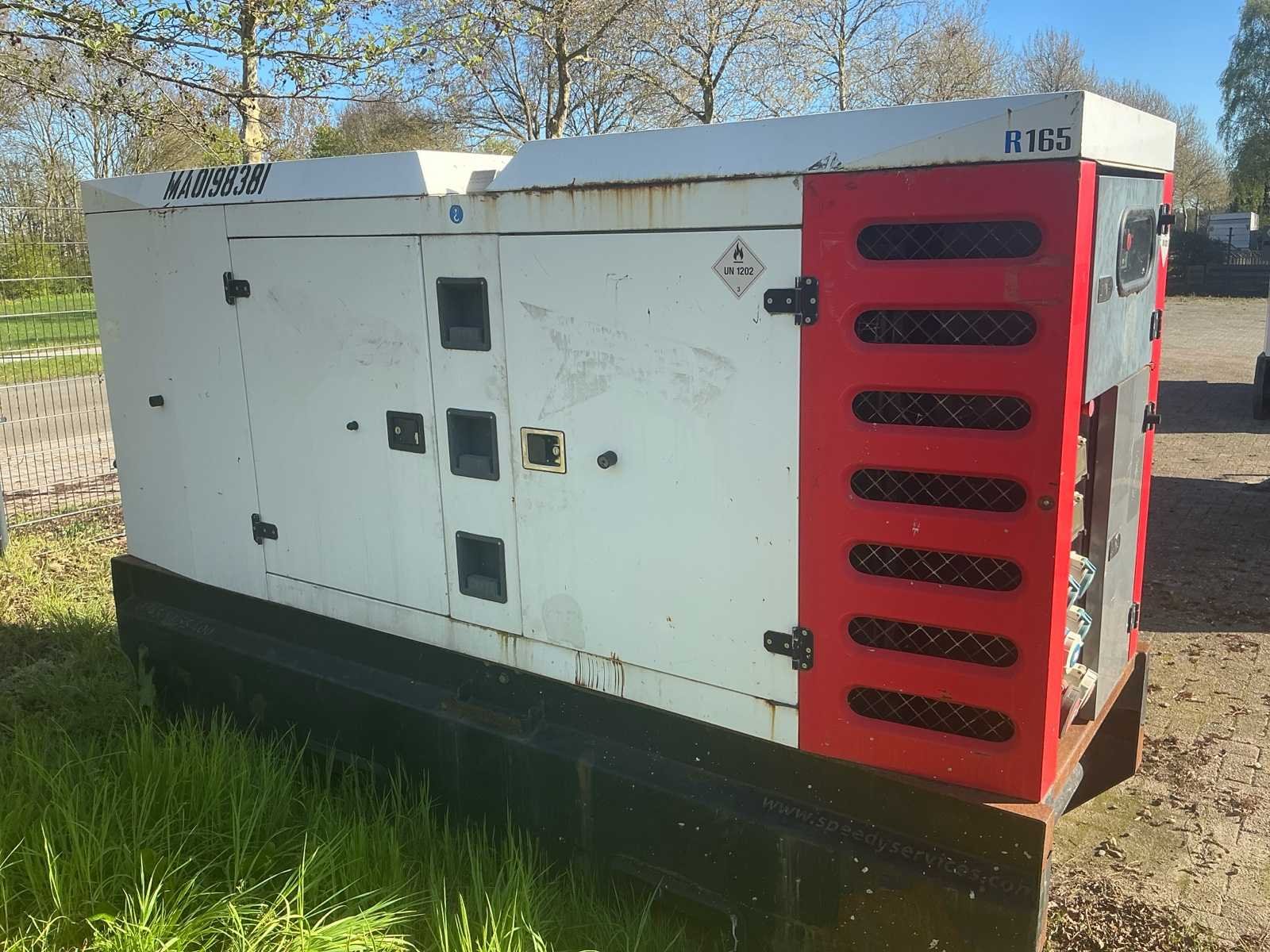 Voorzien van; John Deere 6- Cilinder Merk: SDMO Type: R165 Bouwjaar: 2011 Serienummer: MA0198381 Capaciteit.: 150kVA Motor merk: John Deere Afgelezen urenstand: 5165