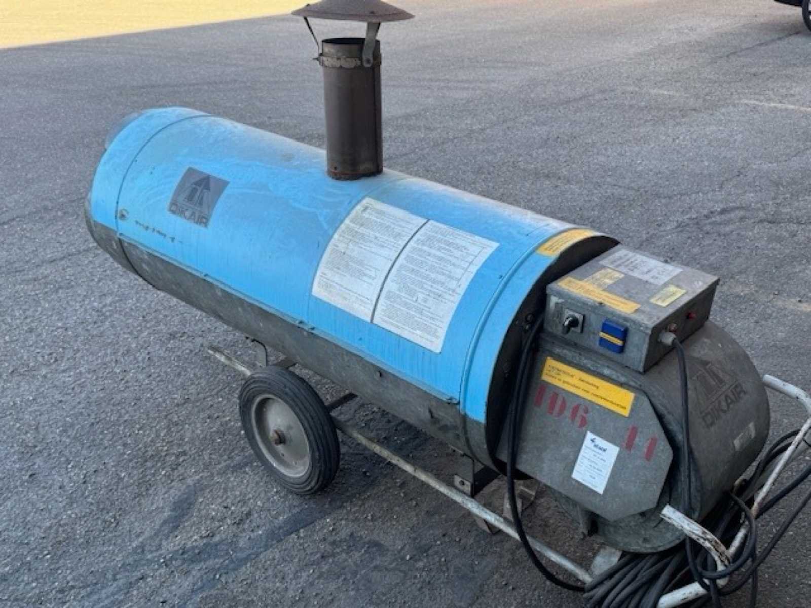 Voorzien van slangen en verrijdbaar onderstel. Merk: Dikair Vermogen: 65kW Brandstof: Diesel Totale afmeting L: 2250mm Totale afmeting Breedte: 680mm Totale afmeting Hoogte: 1330mm