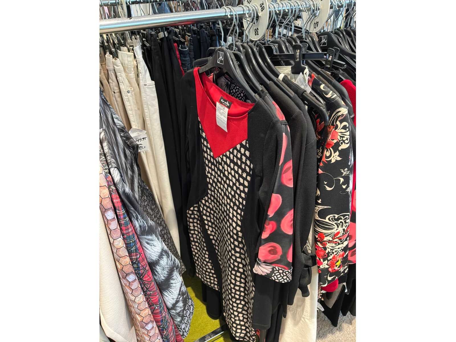 Bestaande uit: blouses, tops, jurken, rokken, broeken. Van onder andere merken: Rabe, Faber Women, Joseph Ribkoff, Tom Bowker, Sommermann, Liola, Isabel de Pedro en Airfield. Variërend in maten van 36 tot en met 46. Kledingrekken niet inbegrepen.