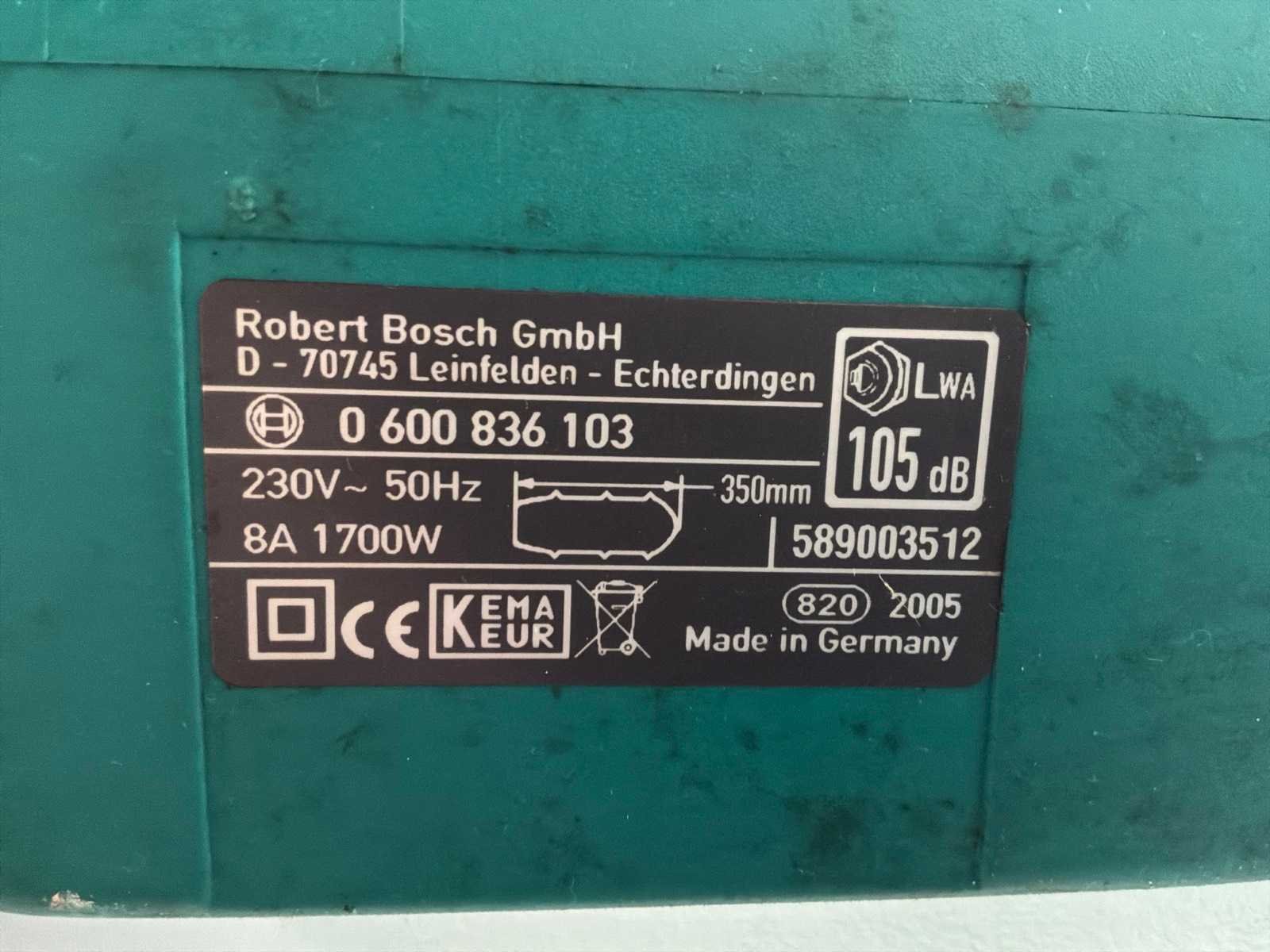 Merk: BOSCH Type: 35-17 S Serienummer: 589003512 Zaagblad afm. l: 350mm Zaagblad afm. b: 70mm Totale afmeting L: 85mm Totale afmeting Breedte: 14mm Aansluiting: 220V Totale afmeting Hoogte: 20mm