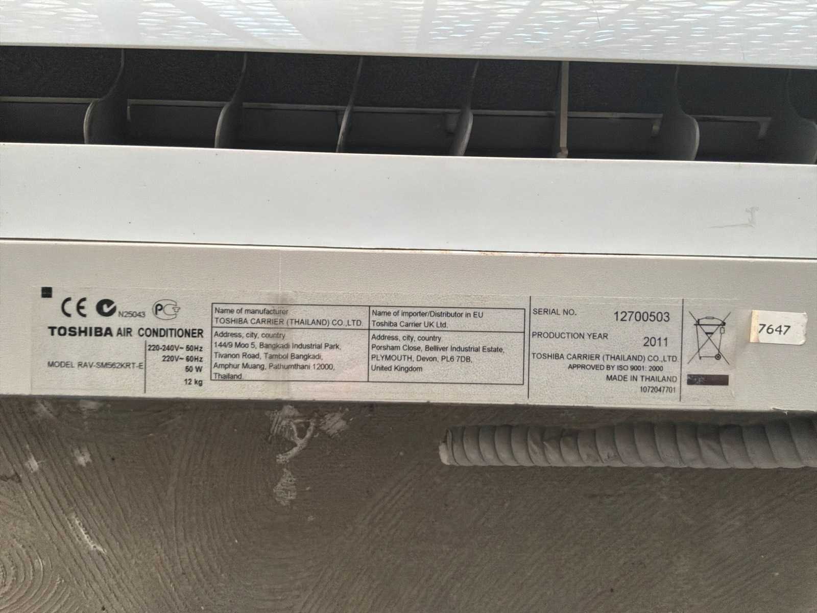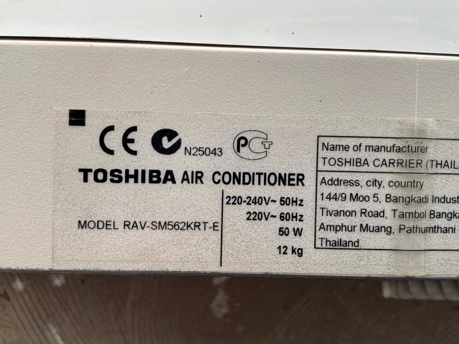 Inclusief TOSHIBA Air Conditioner binnenunit, Model; RAV-SM562KRT-E, afmetingen binnenunit; (100x30x23cm). Merk: TOSHIBA Type: RAV-SP564AT-E Bouwjaar: 2011 Serienummer: 105M0203 Type koudemiddel: R410A Aansluiting: 230V Totale afmeting L: 300mm Totale afmeting Breedte: 860mm Totale afmeting Hoogte: 560mm