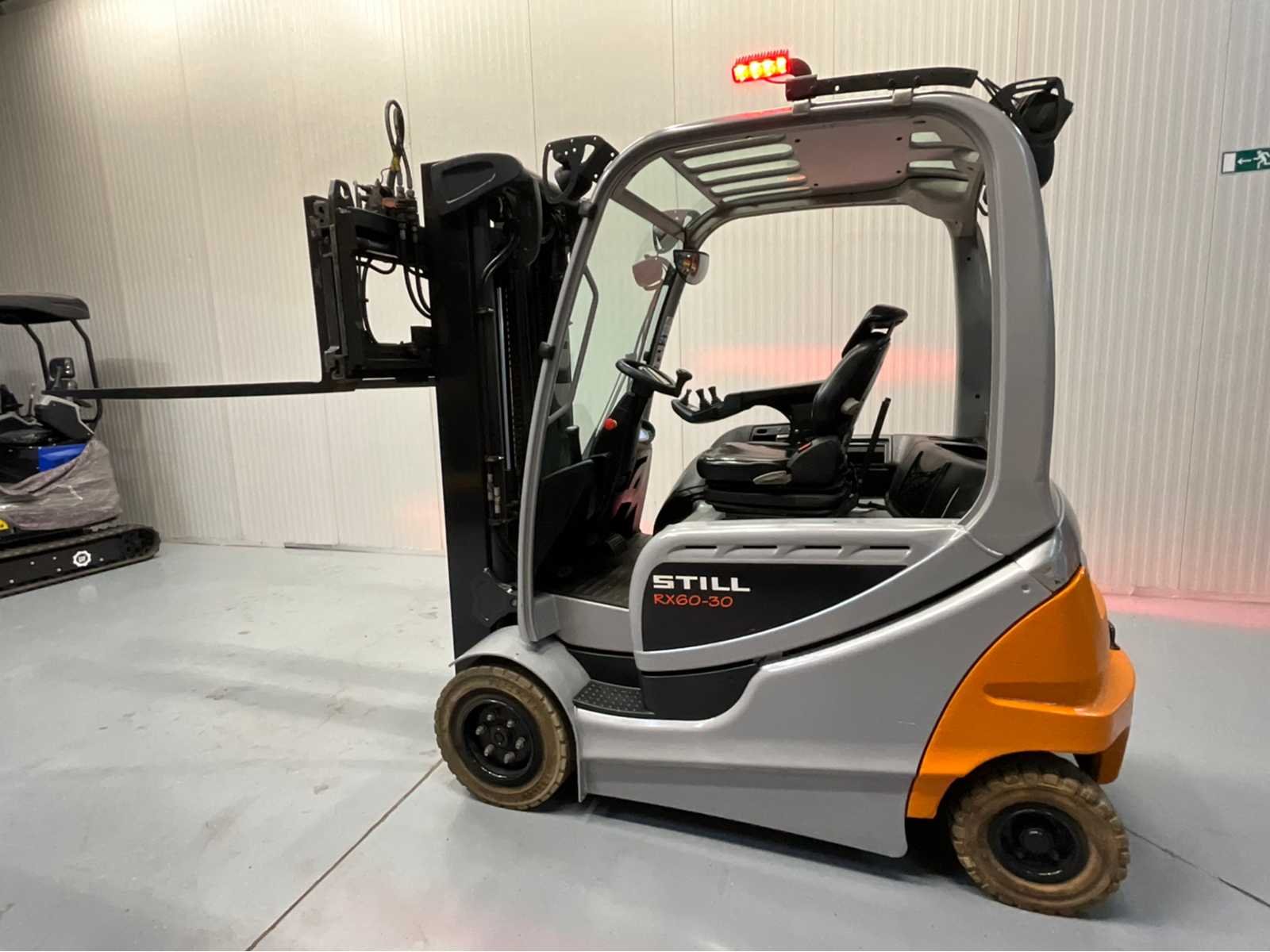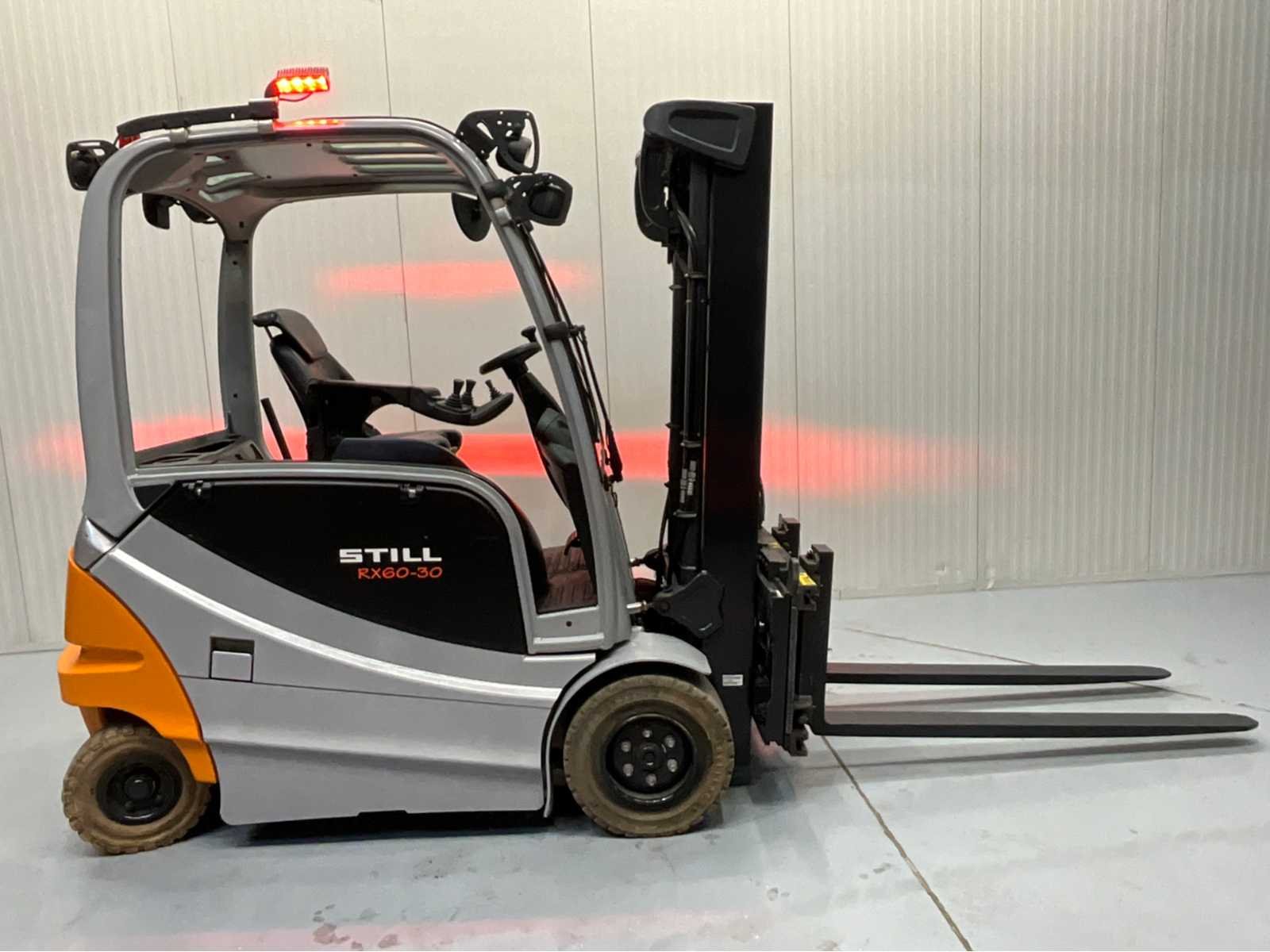 Rode lijnverlichting zijkant - bluespot voor en achter Merk: Still Type: RX60-30 Bouwjaar: 2019 Serienummer: 516353V00091 Brandstof: Elektrisch Mast: triplex Soort band: Volrubber banden Aantal wielen: 4 Afgelezen urenstand: 8026 Free-lift: true Side-shift: true Roterend vorkenbord: true Triple mast: true Eigen gewicht: 5452kg Hefvermogen: 3000kg Lepellengte: 1600mm Max. hefhoogte: 4810mm Hefhoogte: 4810mm Vol rubber banden: true Minimale doorrijhoogte: 2300mm Totale afmeting L: 4200mm Totale afmeting Breedte: 1200mm Totale afmeting Hoogte: 2300mm