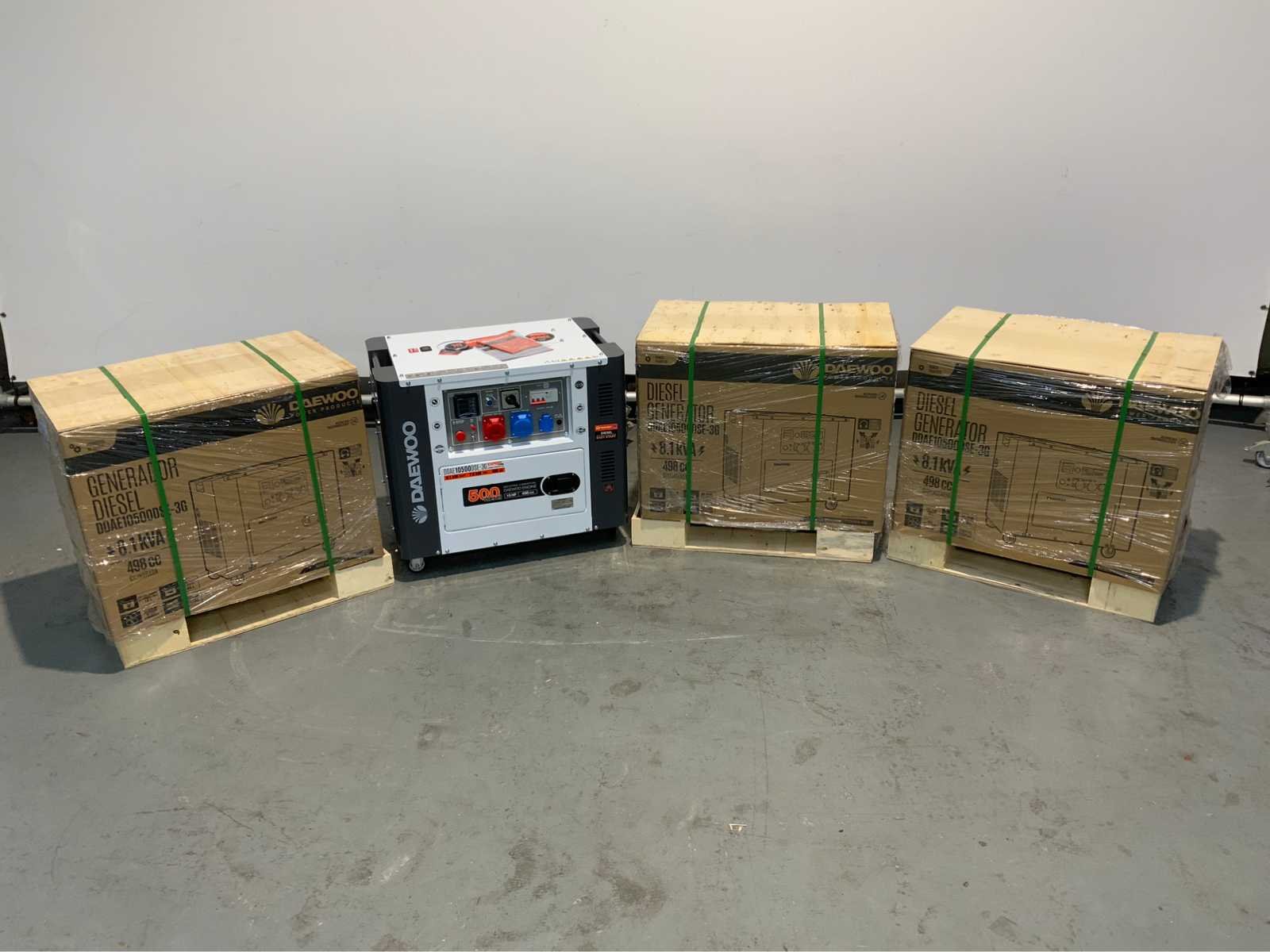 Capaciteit: 8,10 kVA; aansluiting: 400 V; motor merk: Daewoo; motor capaciteit: 11 kW; generator capaciteit: 32 A; afgelezen urenstand: 0; handboek aanwezig, diesel, ongebruikt, krachtstroom 400 volt en 220 volt Merk: Daewoo Type: DDAE10500DSE-3G diesel Bouwjaar: 2025 Capaciteit.: 8kVA Motorcapaciteit: 11kW Afgelezen urenstand: 0 Machinegewicht: 165kg Totale afmeting L: 880mm Totale afmeting Breedte: 560mm Totale afmeting Hoogte: 720mm