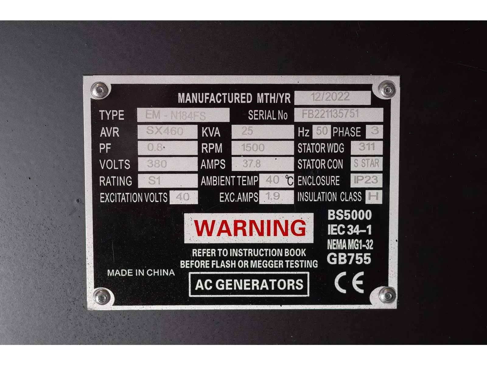 Ongebruikt, frequentie 50hz , stand-by power , 72 liter tank , 3-fase; 4124 Merk: Daewoo Type: Dagfs-25 Bouwjaar: 2022 Capaciteit.: 25kVA Aansluiting: 380V Motor merk: Ricardo K4100D Motorcapaciteit: 20kW Generator merk: Ac Generator Generator type: Vg-184-g Generator capaciteit: 33A Afgelezen urenstand: 0 Handboek aanwezig: true Machinegewicht: 710kg Totale afmeting Lengte: 2000mm Totale afmeting Breedte: 850mm Totale afmeting Hoogte: 1150mm