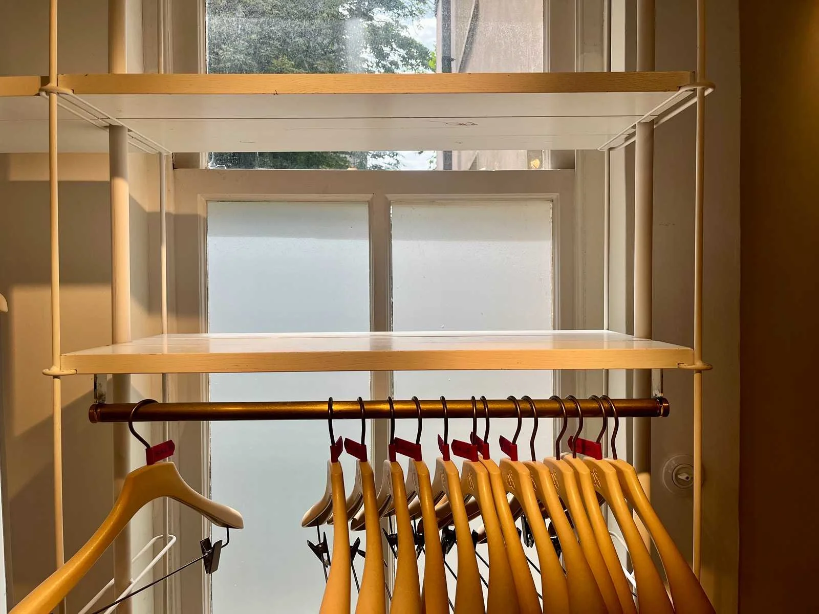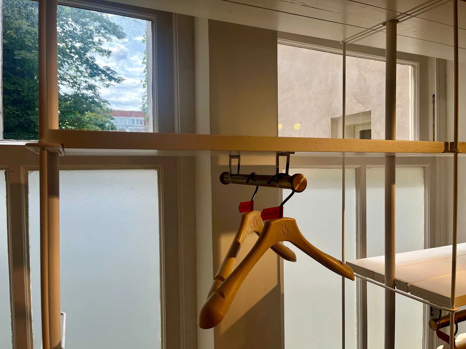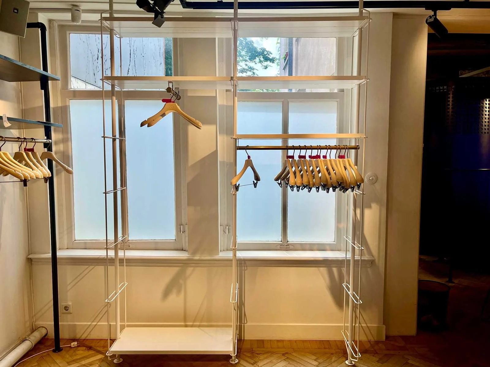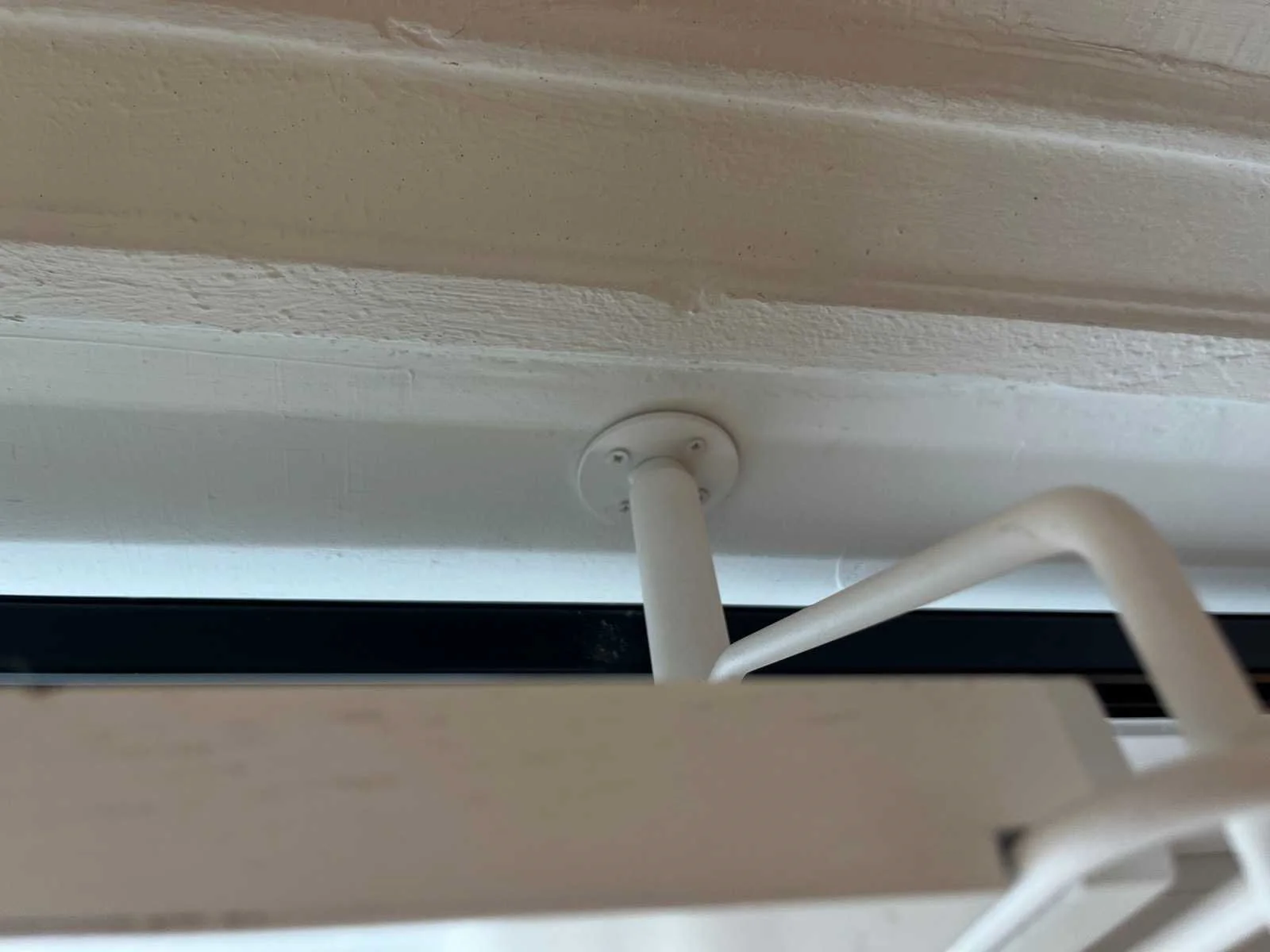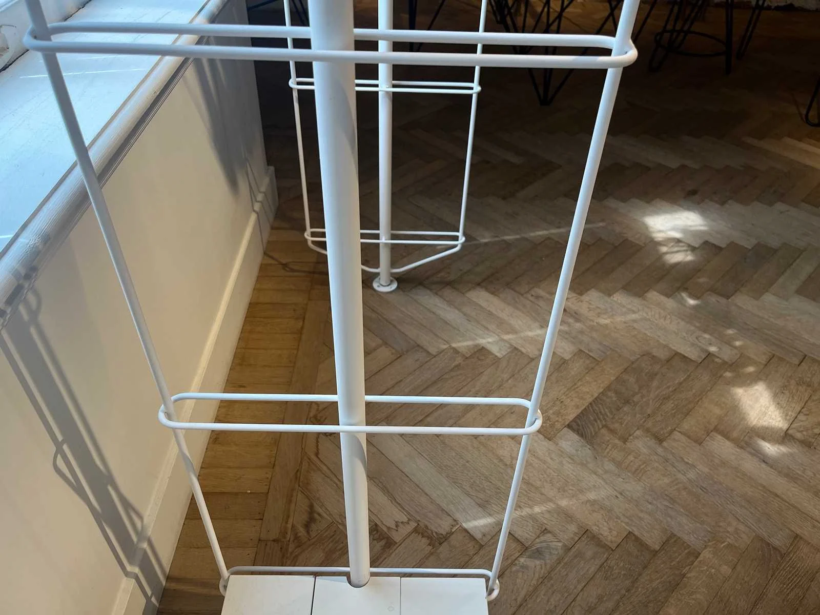 Dit wandrek is op de op de vloer en op het plafond geschroefd. In totaal 3 staanders voorzien van 6 houten legborden met afmeting 800x330 mm .