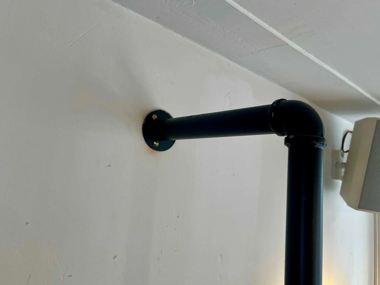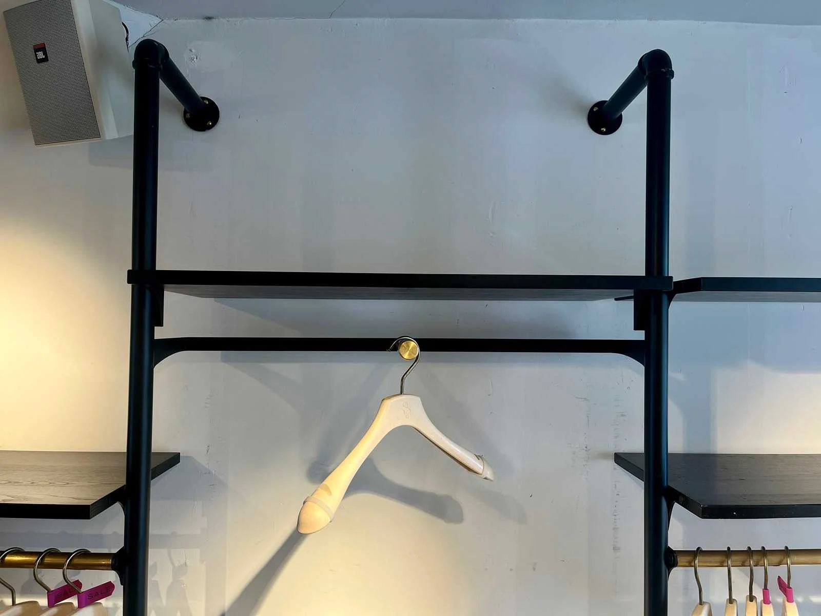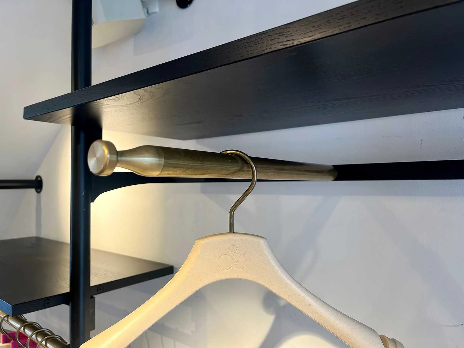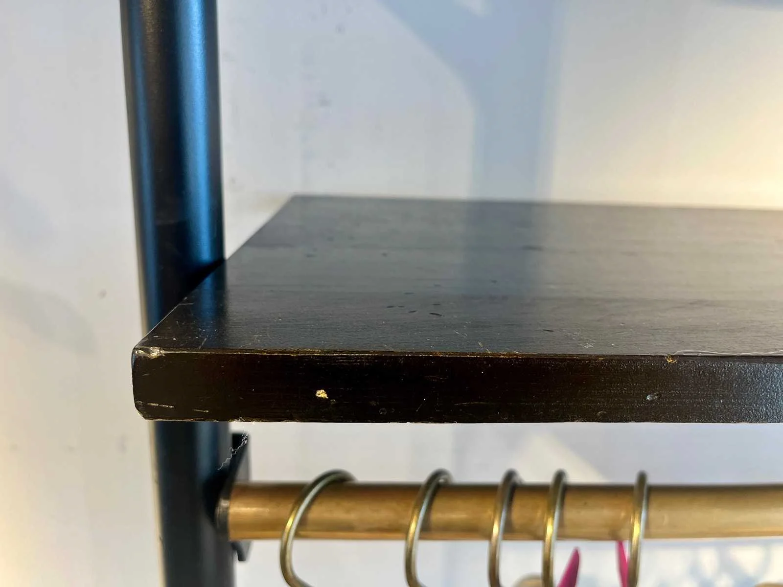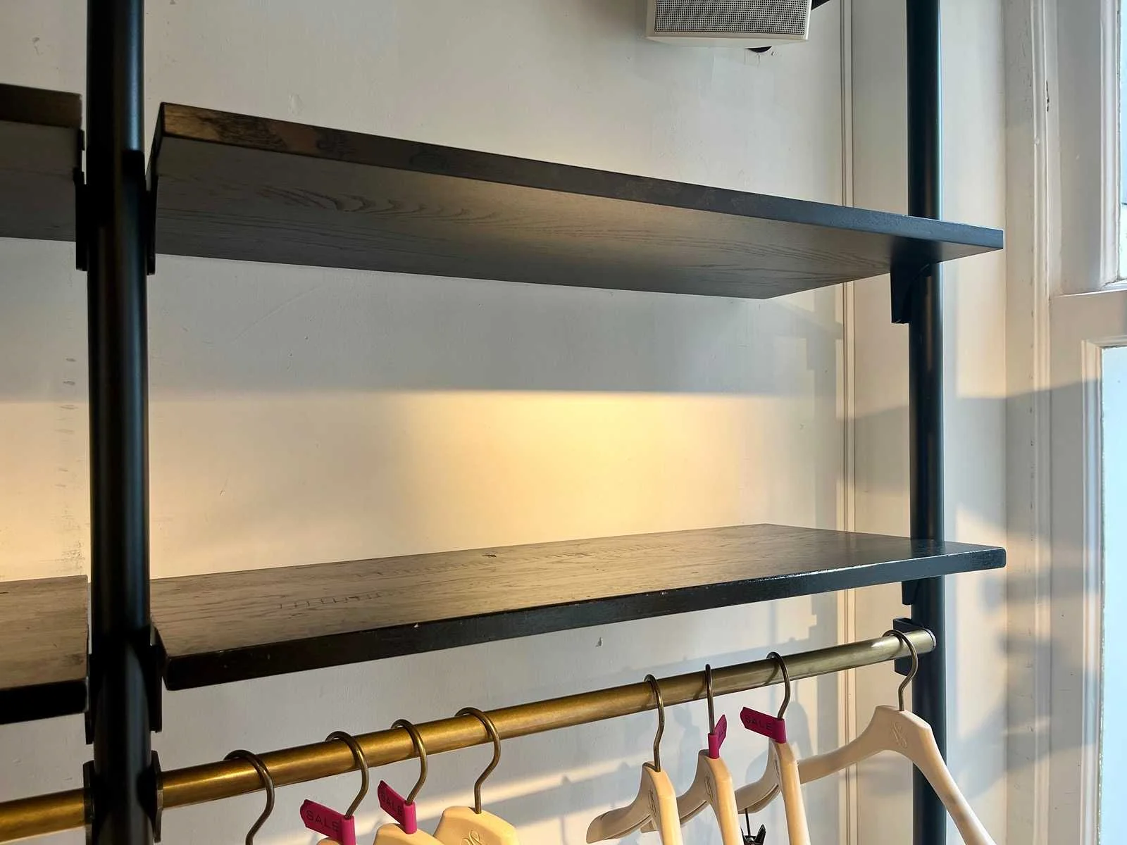 Stalen wandrek met houten legborden