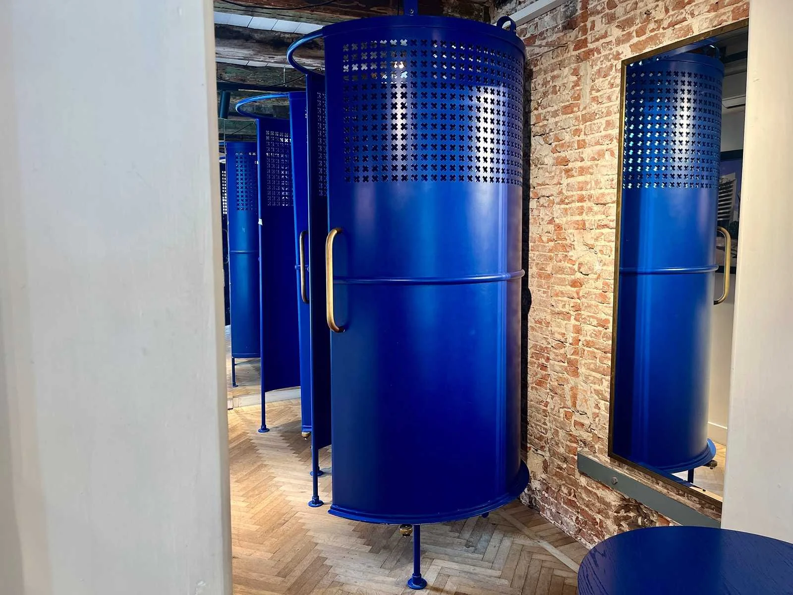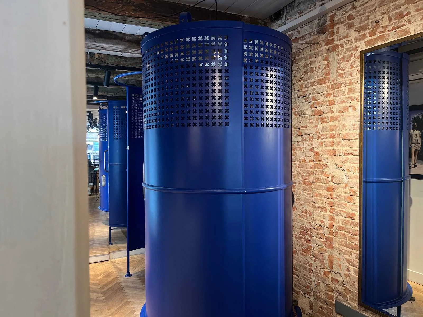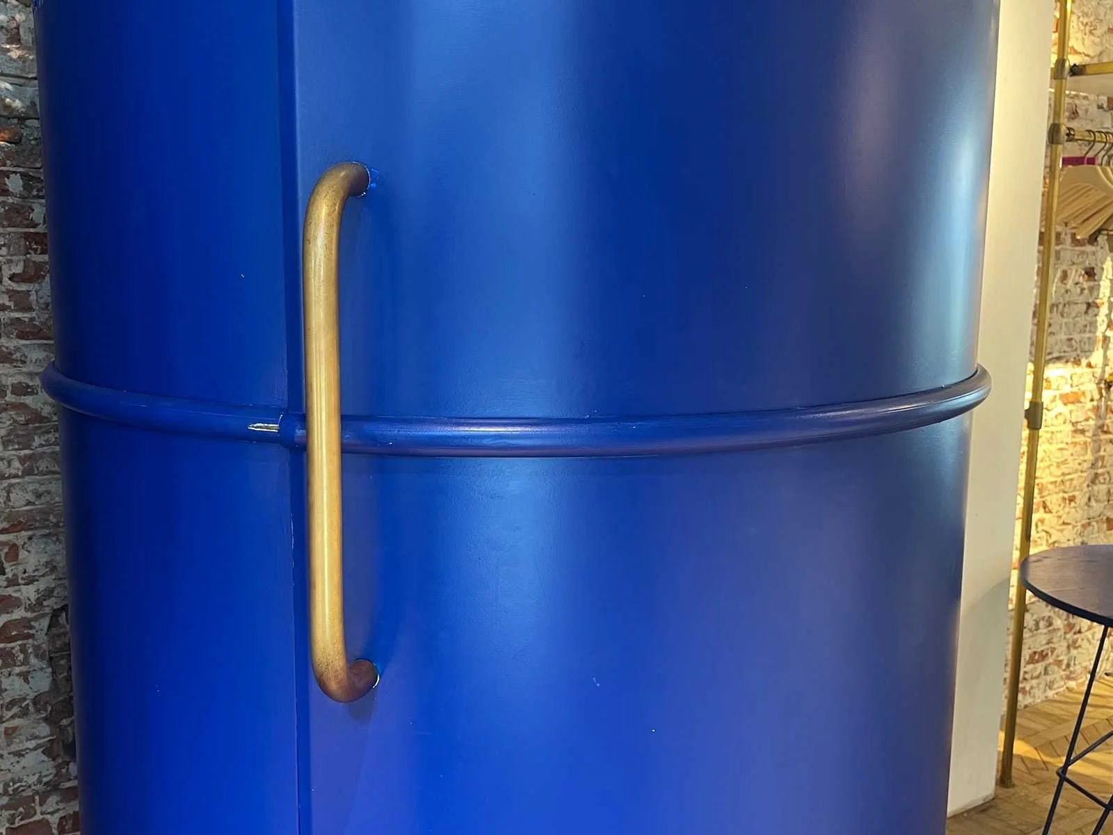 Deze ronde paskamer met roldeur is op de vloer en aan de wand bevestigd. Totale afmeting Breedte: 1050mm Totale afmeting Hoogte: 2250mm