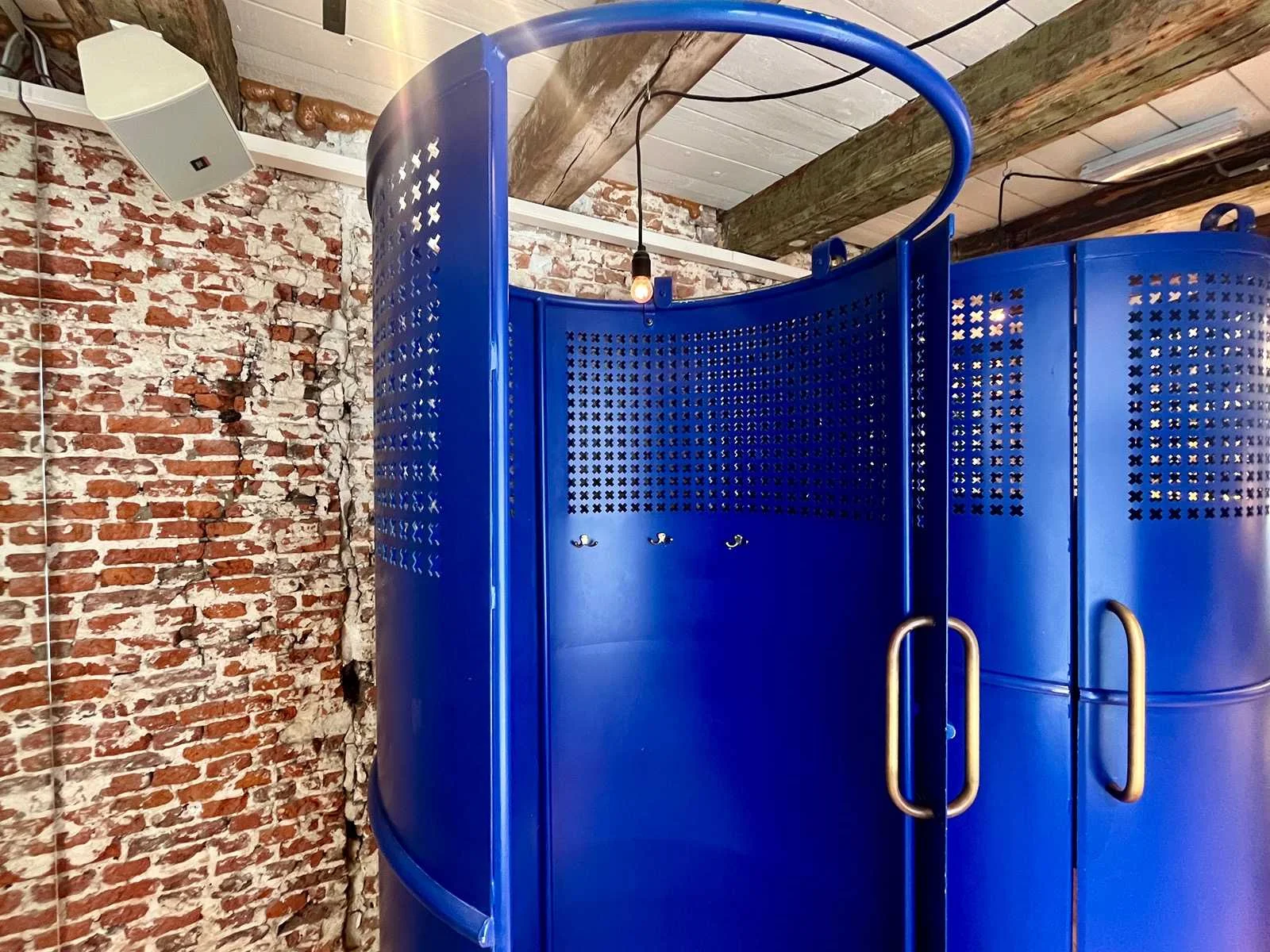 Deze ronde paskamer met roldeur is op de vloer en aan de wand bevestigd. Totale afmeting Breedte: 1050mm Totale afmeting Hoogte: 2250mm
