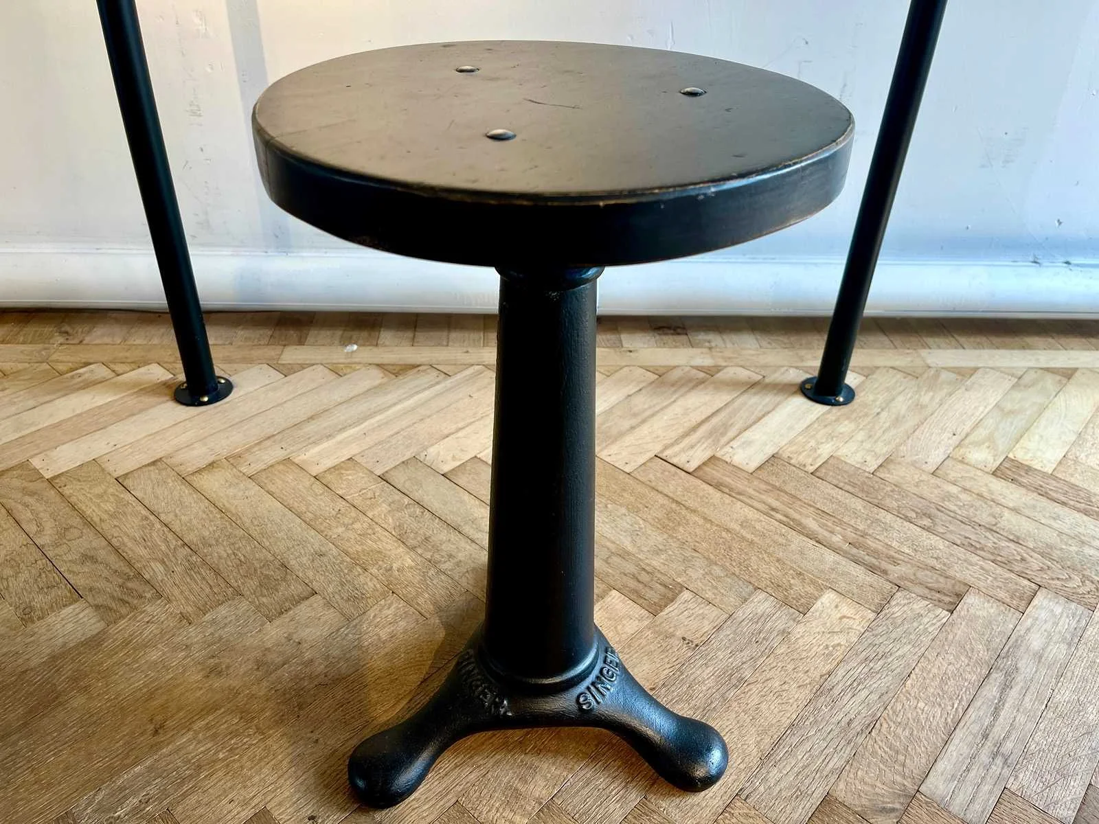 Singer - industriële kruk met gietijzeren poot