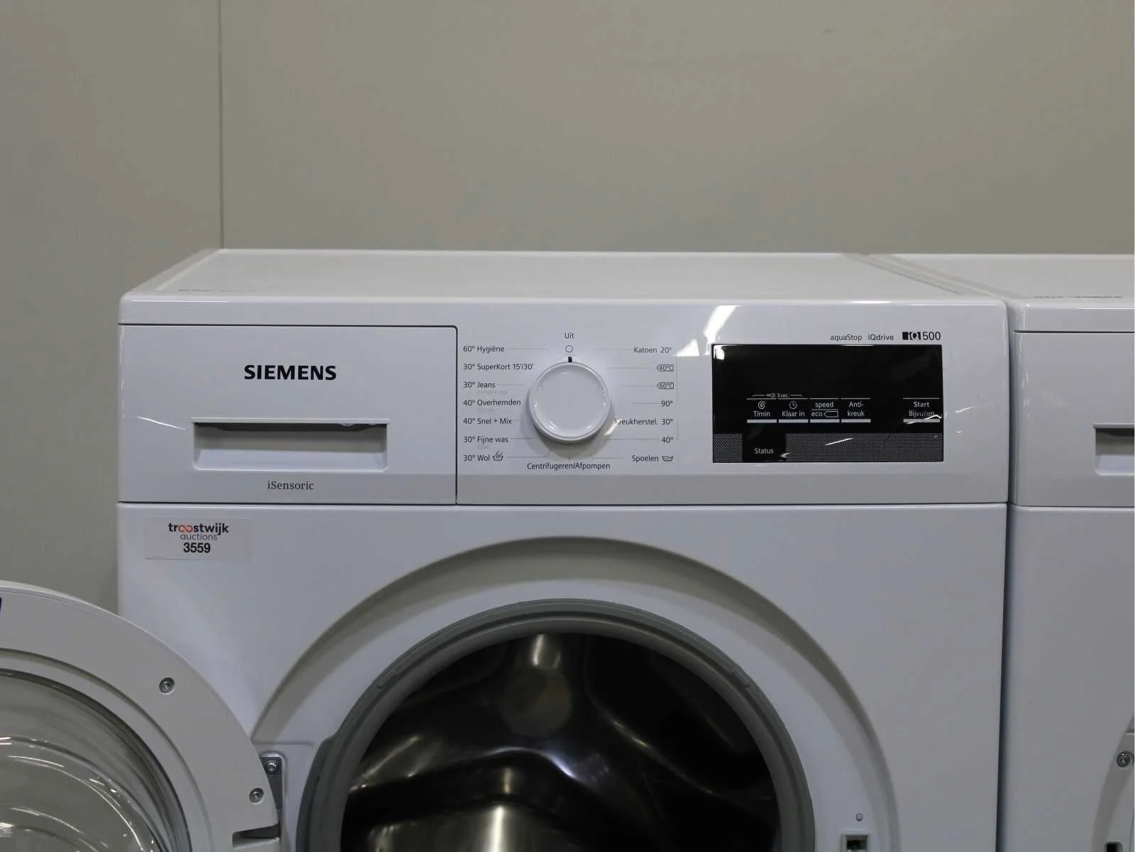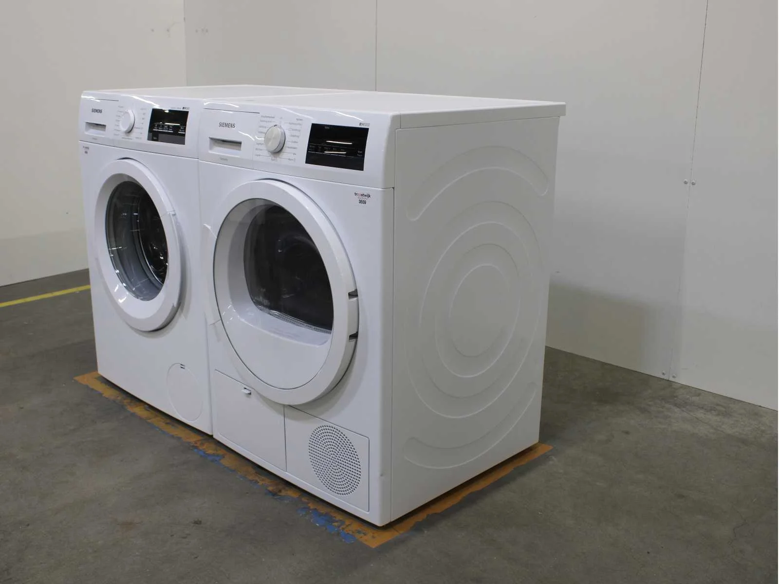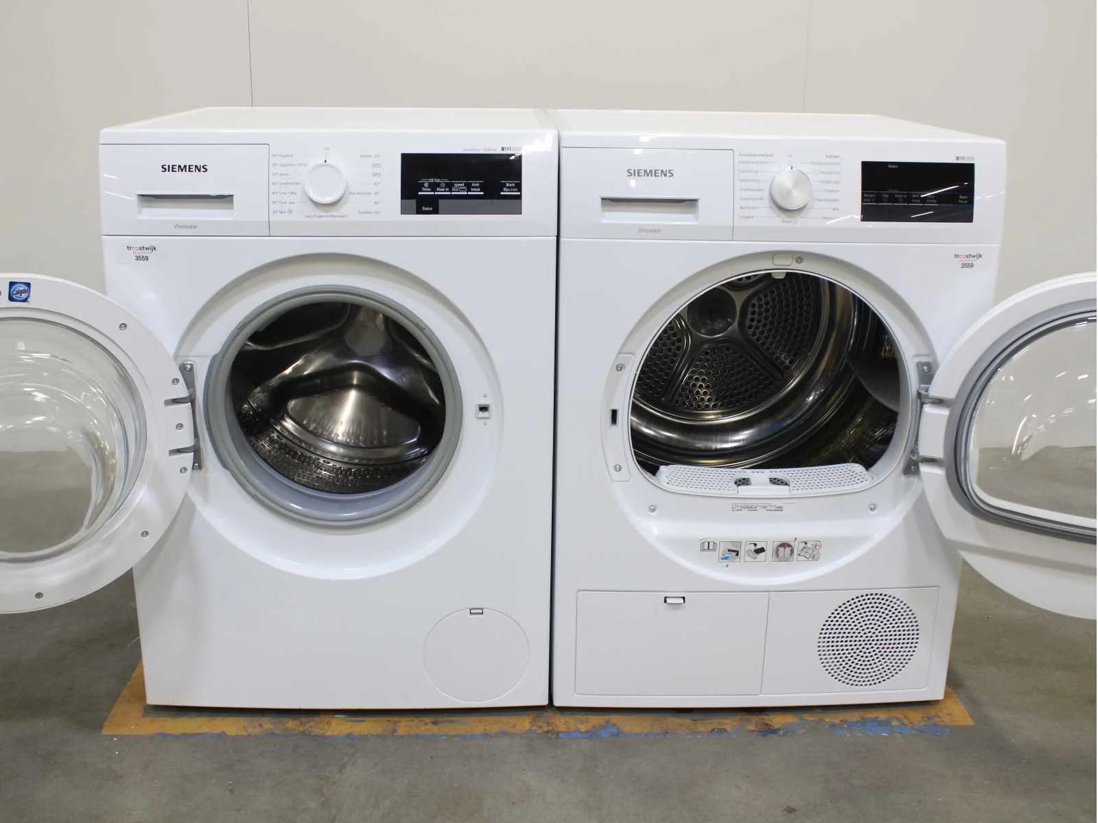 Deze wasmachine en wasdroger komen uit een partij jong gebruikt A-Merk witgoed. De machines zijn volledig getest, gereinigd en indien nodig gerepareerd. Houdt er rekening mee dat de machines lichte gebruikssporen kunnen hebben. Wasmachines en wasdrogers hebben vaak standaard afmetingen. Hoogte 85cm, Breedte 60cm en Diepte 60 tot 70cm, incl. uitstekende slangen e.d. aan de achterzijde. Als de machine vrij komt te staan is de afmeting minder relevant. Wil je de machine in een nis plaatsen of inbouwen? Controleer dan de exacte afmetingen op basis van het aangeboden merk en model/type. Within 7 days Merk: Siemens Model: WMN16T3471/11 9612 00234 en WT45H200NL/04 9703 200039 Serienummer: WMN16T3471 en WT45H200NL/04