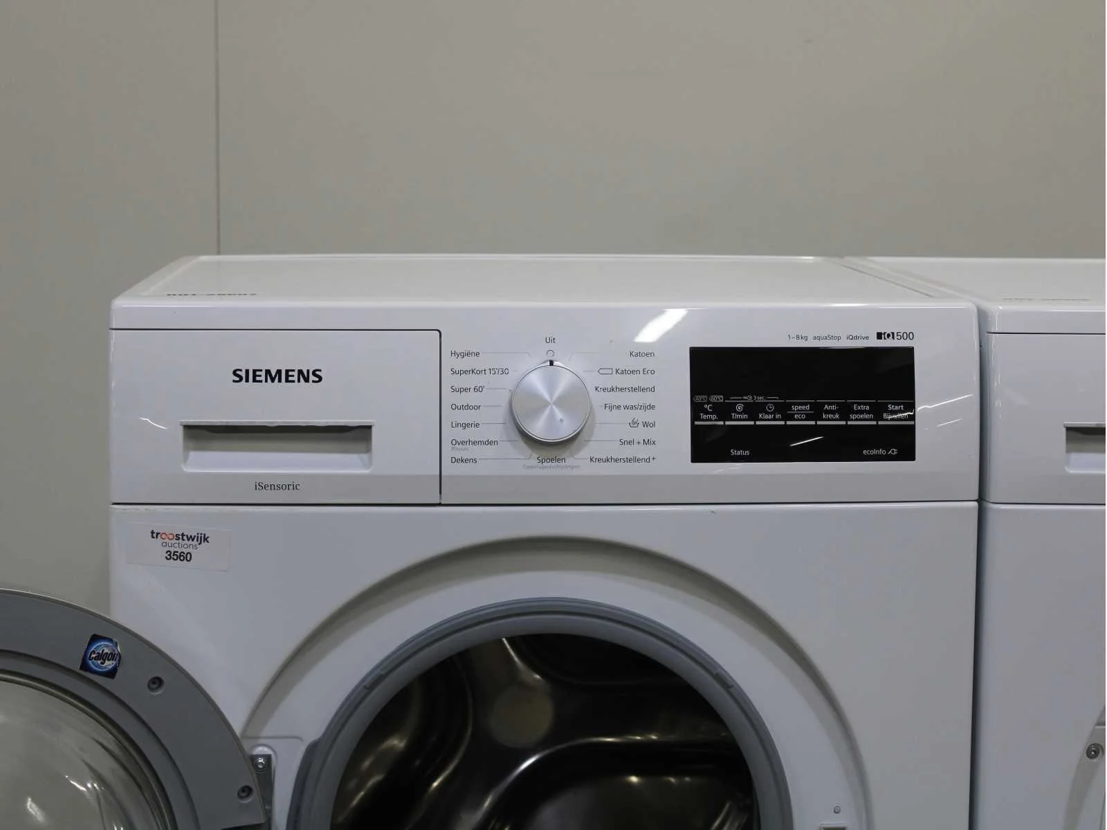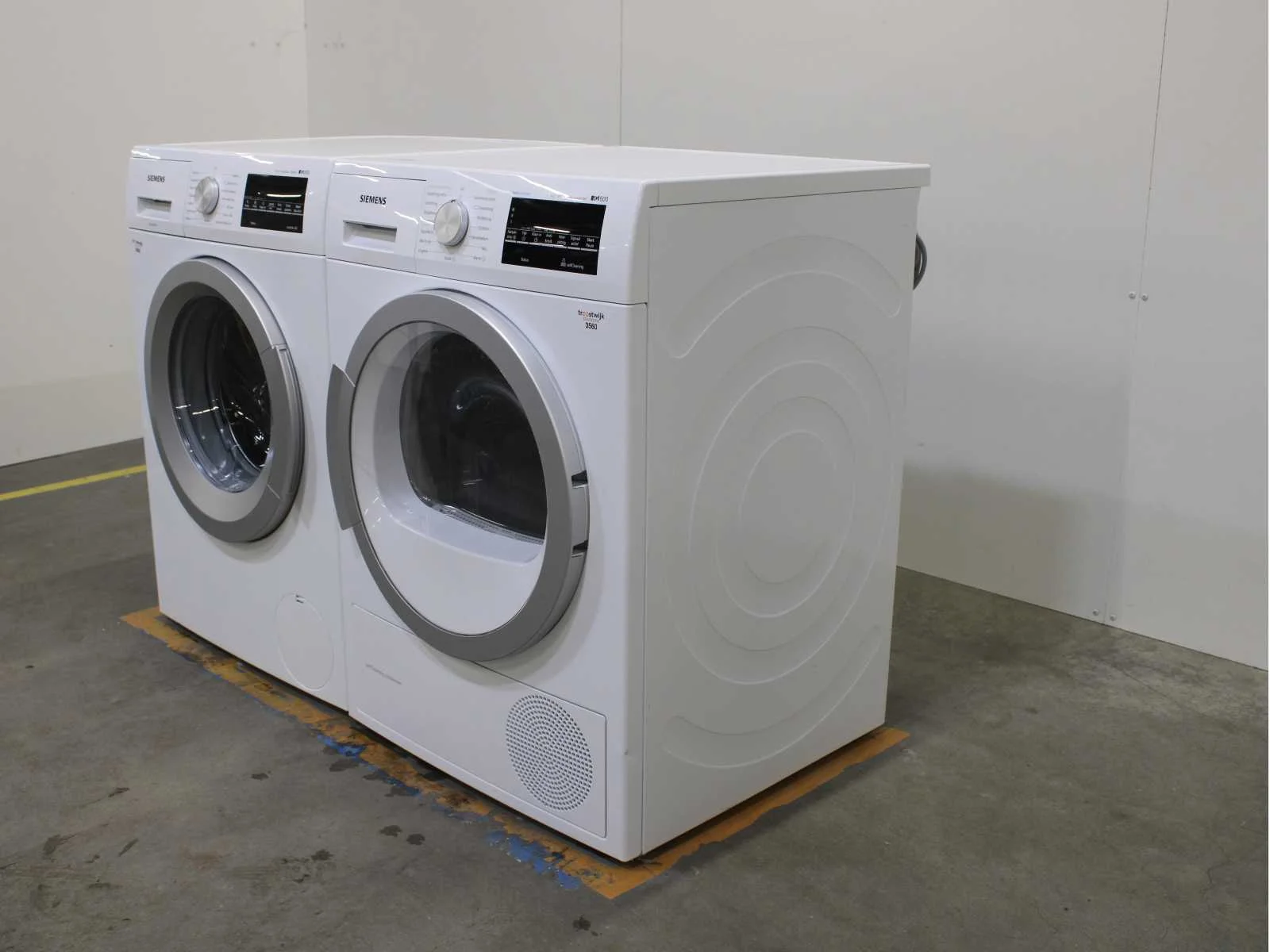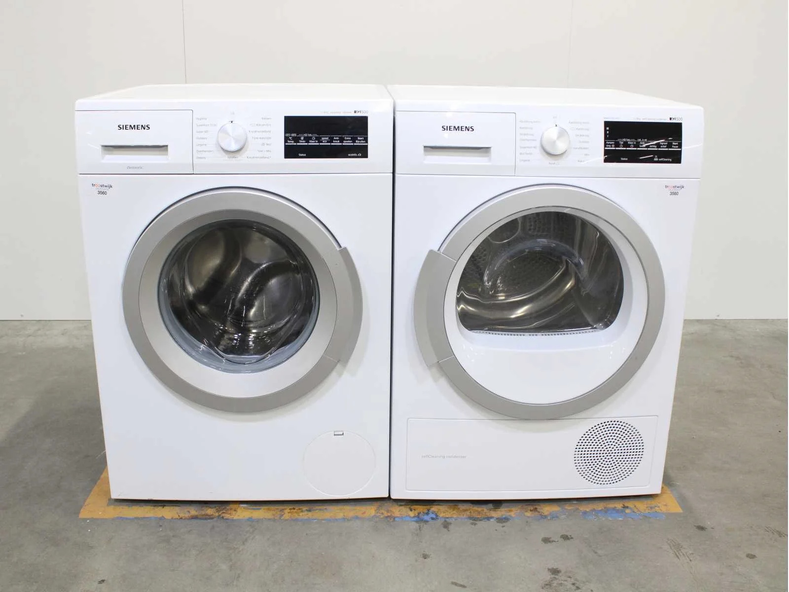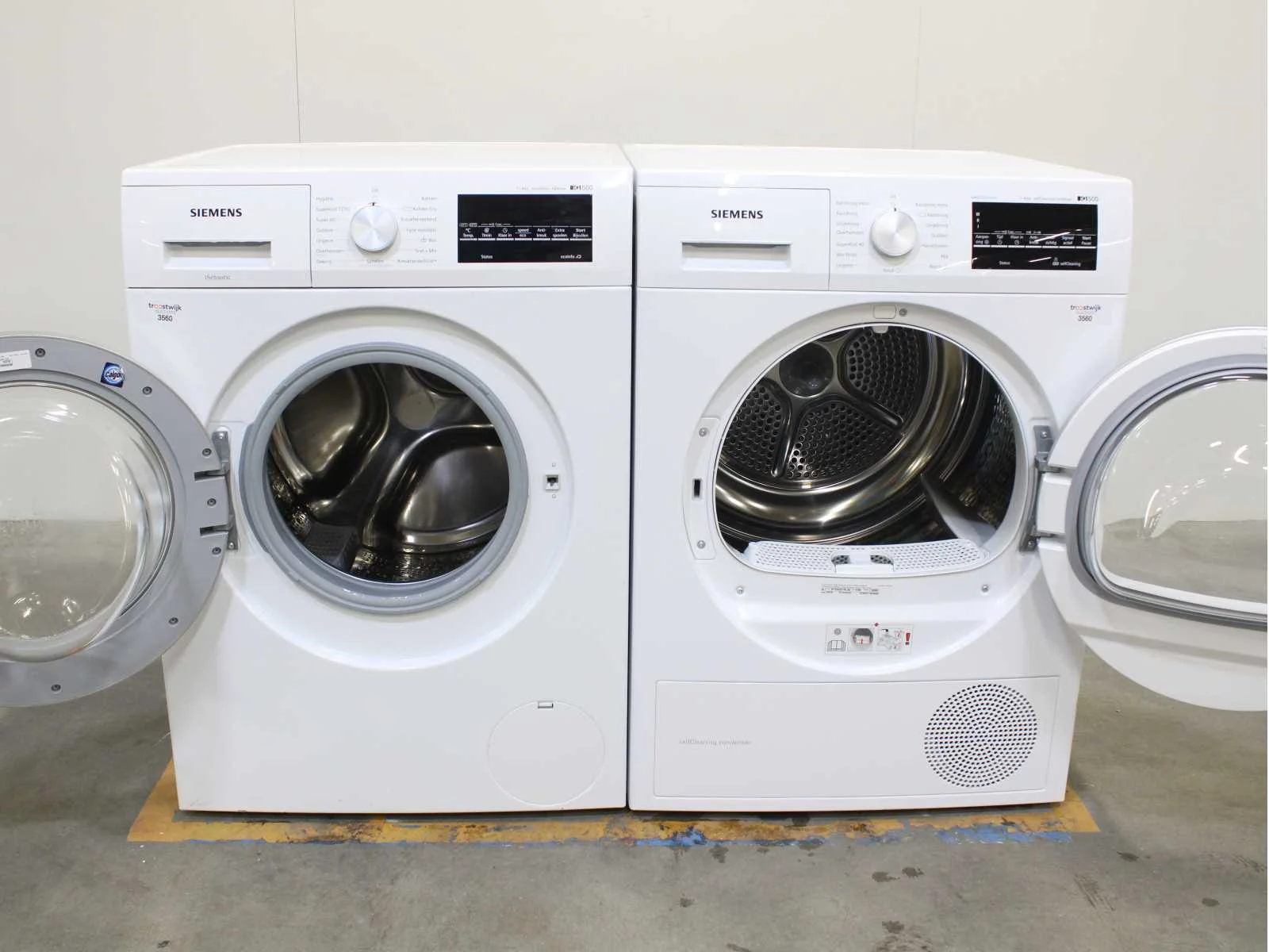 Deze wasmachine en wasdroger komen uit een partij jong gebruikt A-Merk witgoed. De machines zijn volledig getest, gereinigd en indien nodig gerepareerd. Houdt er rekening mee dat de machines lichte gebruikssporen kunnen hebben. Wasmachines en wasdrogers hebben vaak standaard afmetingen. Hoogte 85cm, Breedte 60cm en Diepte 60 tot 70cm, incl. uitstekende slangen e.d. aan de achterzijde. Als de machine vrij komt te staan is de afmeting minder relevant. Wil je de machine in een nis plaatsen of inbouwen? Controleer dan de exacte afmetingen op basis van het aangeboden merk en model/type. Within 7 days Merk: Siemens Model: WM16T462NL/01 9510 00256 en WT43W3G1NL/05 9705 00080 Serienummer: WM14T462NL en WT43W3G1NL