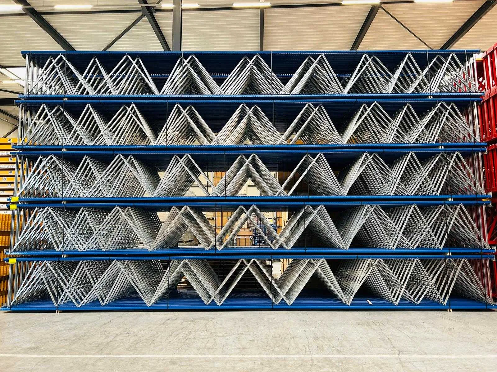 Reeds professioneel gedemonteerd; word in pakketten uitgeleverd; 1 pakket staanders bevat 12 stuks; 1 laag liggers bevat 20 stuks; bouwjaar 2023; Merk: Jungheinrich Sectie afm. b: 1100mm Sectie diepte: 3600mm Sectie afm. h: 10500mm Aantal staanders: 12 Aantal liggers: 100 Demontabel: true Model: MPB