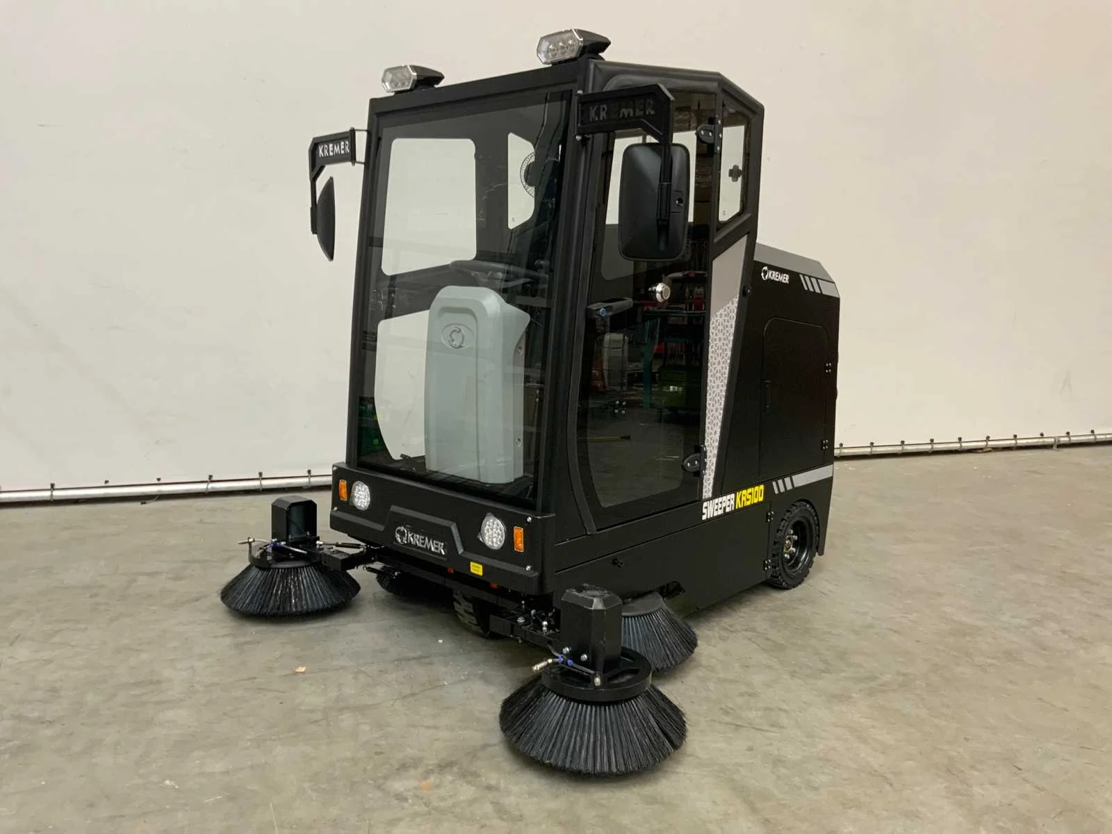 Werkbreedte: 1900mm; elektrisch: ja; accu lader;batterij capaciteit 48v/100AH 4stuks;opvangbak capaciteit 180 liter;watertank 80 liter;ongebruikt; verpakkingsmaat 2115 x 1325 x 2110mm;claxon;4 ledlampen voor; met waternevel sproeisysteem , antistof , dubbele veegborstel voor;6100 Merk: Kremer Type: KRS100 Bouwjaar: 2023 Werkbreedte: 1900mm Elektrisch: true Accu lader: true Aansluiting: 230V Eigen gewicht: 780kg Totale afmeting L: 2200mm Totale afmeting Breedte: 1900mm Totale afmeting Hoogte: 1890mm
