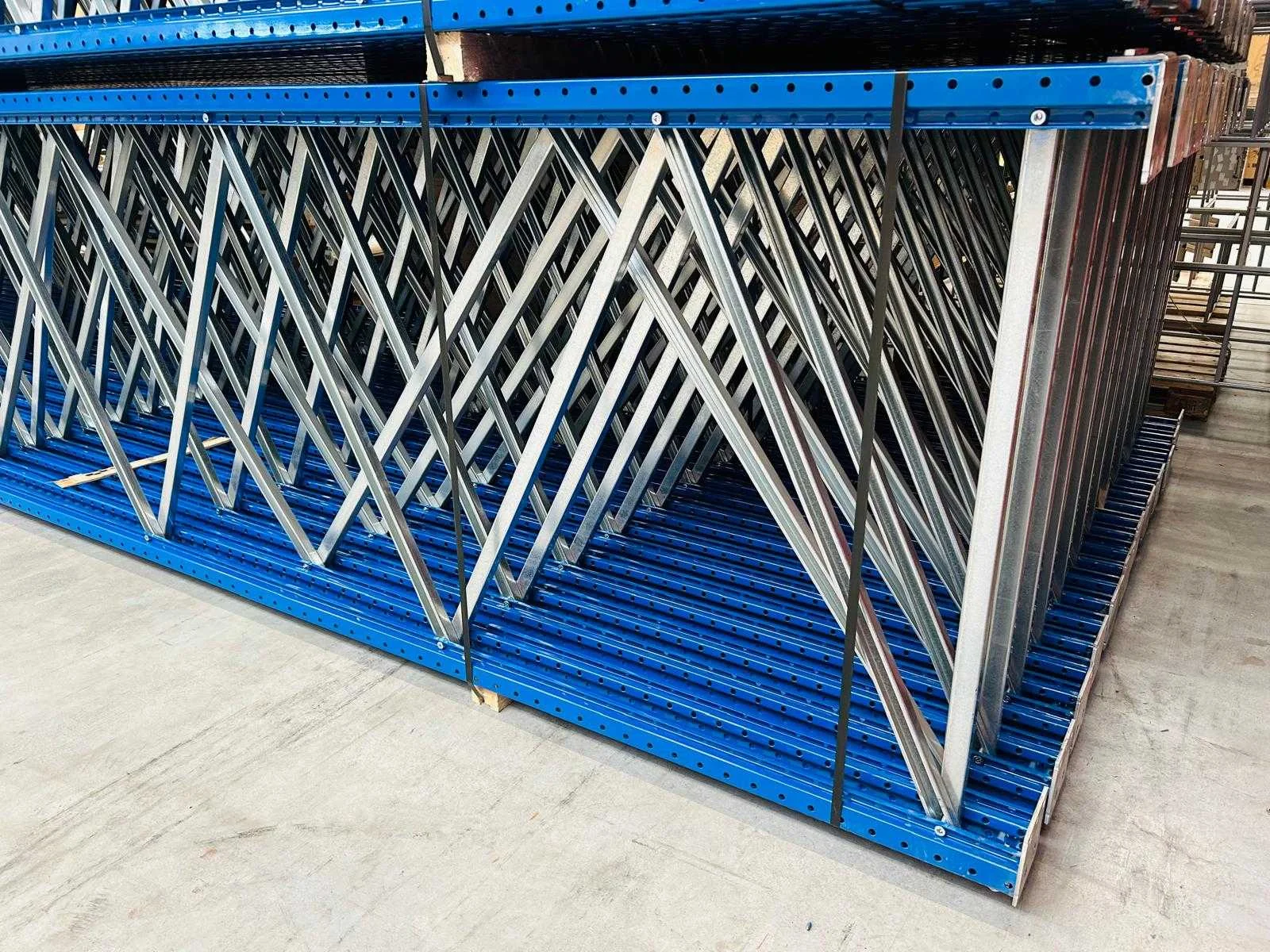 Reeds professioneel gedemonteerd; word in pakketten uitgeleverd; 1 pakket staanders bevat 12 stuks; 1 laag liggers bevat 20 stuks; bouwjaar 2023; Merk: Jungheinrich Sectie afm. b: 1100mm Sectie diepte: 3600mm Sectie afm. h: 10500mm Aantal staanders: 12 Aantal liggers: 100 Demontabel: true Model: MPB