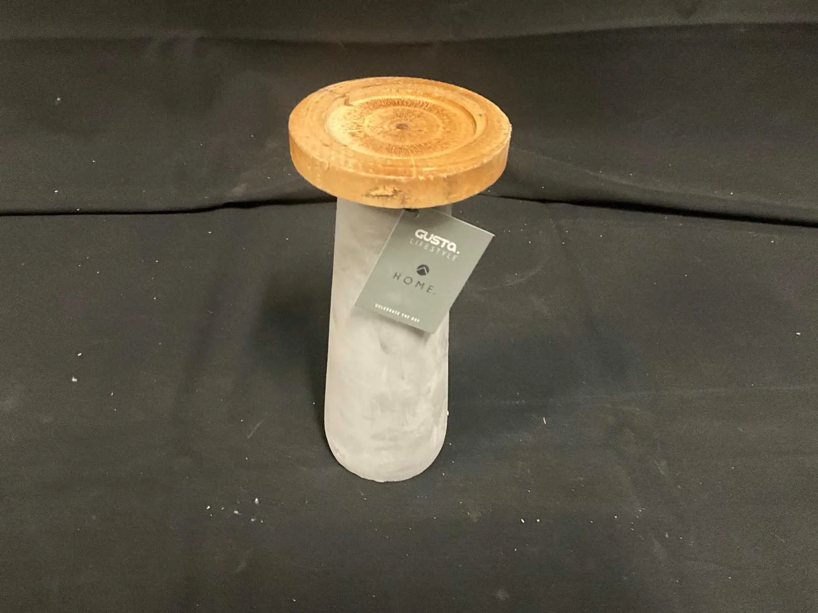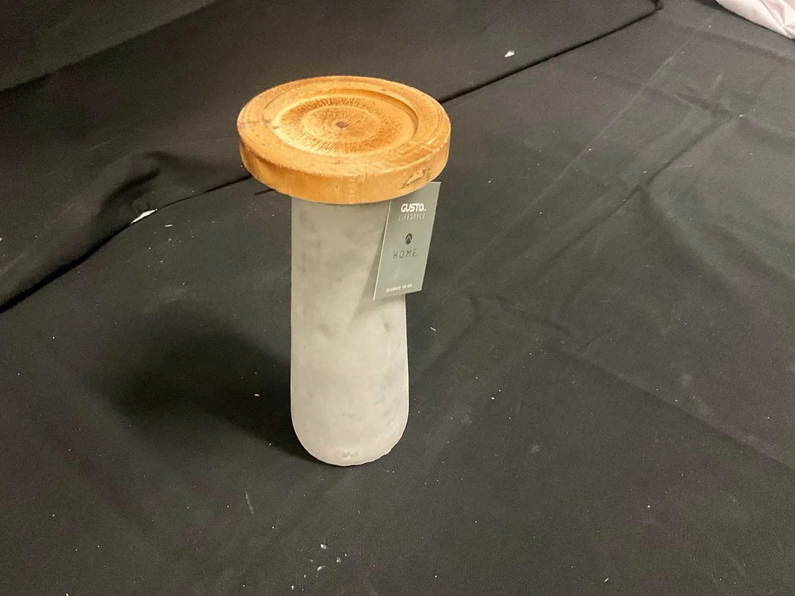 Merk: Gusta Kleur: Cement / hout Lengte: 12cm Breedte: 12cm Hoogte: 25cm Materiaal: Cement / hout