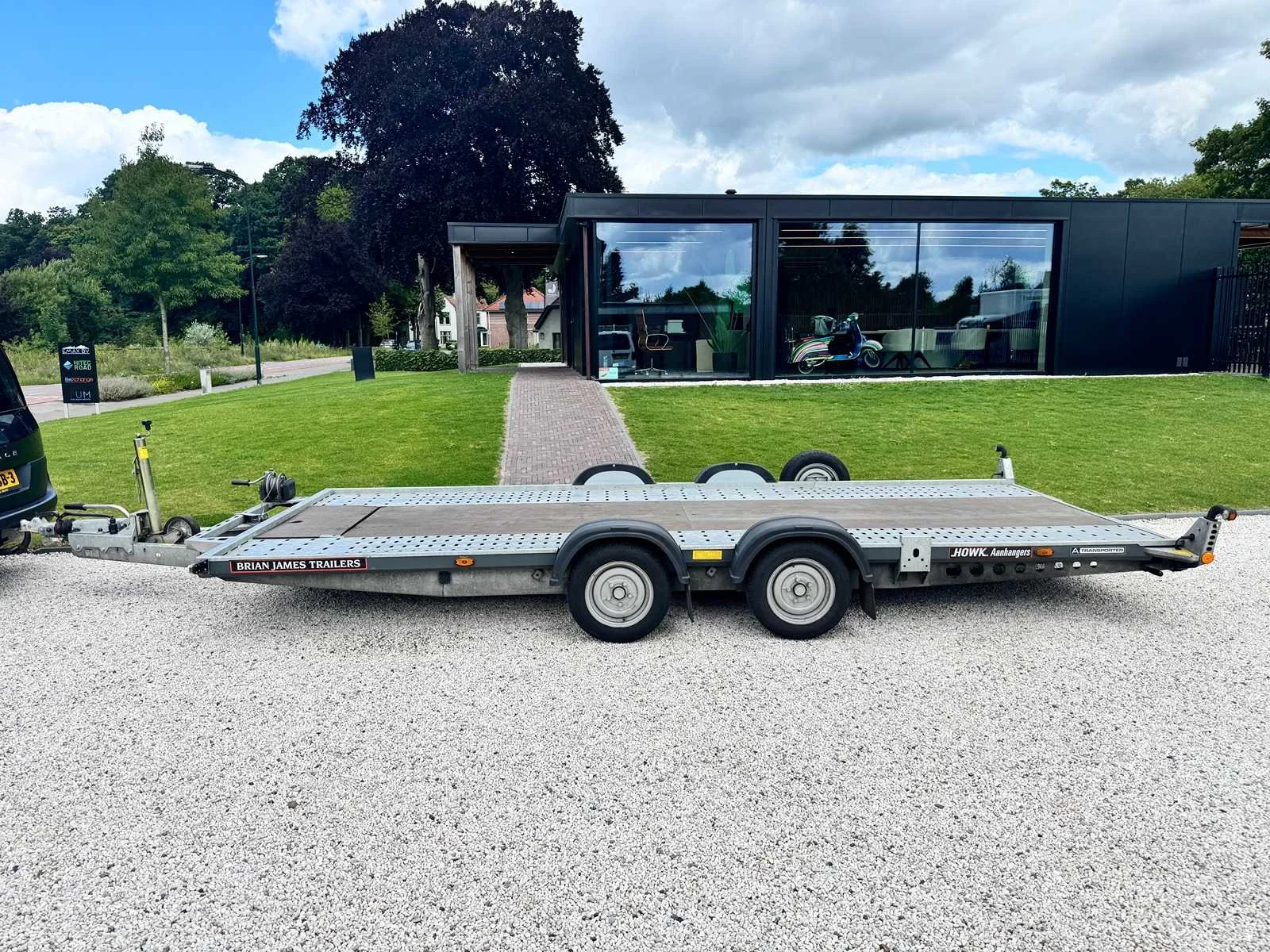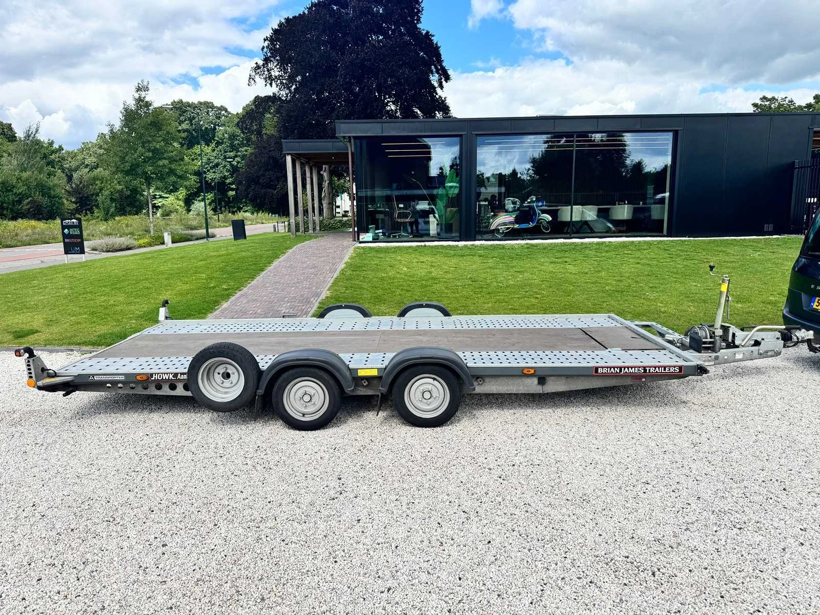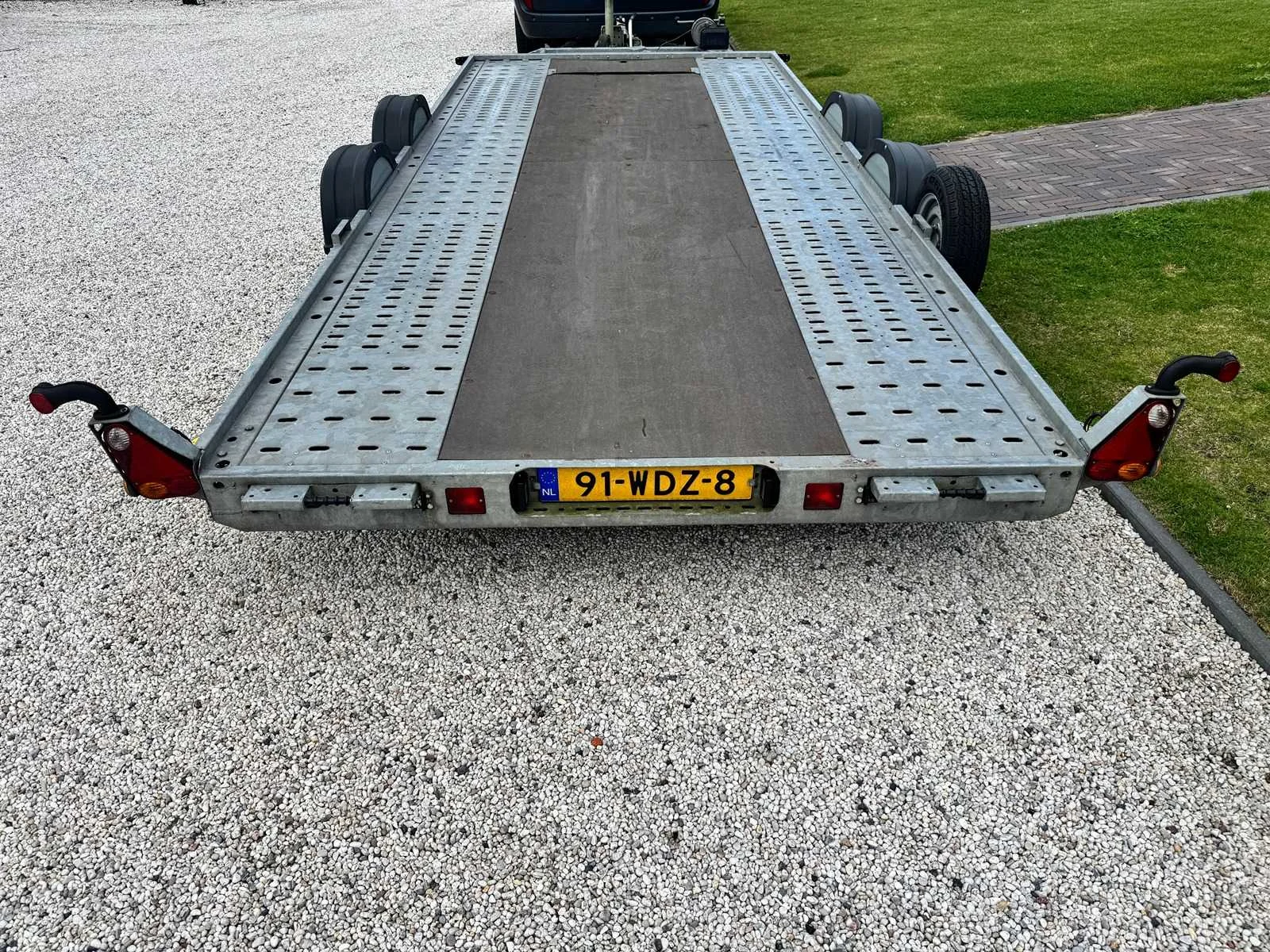 Lengte totaal 647 cm Breedte 238 cm Aantal assen 2 Aantal wielen 4 Wielbasis 432 cm Maximumconstructiesnelheid 140 km/h Afstand hart koppeling tot achterzijde voertuig 643 cm Laadvermogen 2305 kg e4*2007/46*0493*11 Merk: Brian James Type: A-Transporter Bouwjaar: 2022 Ledig gewicht: 695kg Laadvermogen: 2305kg Datum eerste toelating: 2022-05-27 Datum eerste toelating (NL): 2022-05-27 Kenteken: 91-WDZ-8