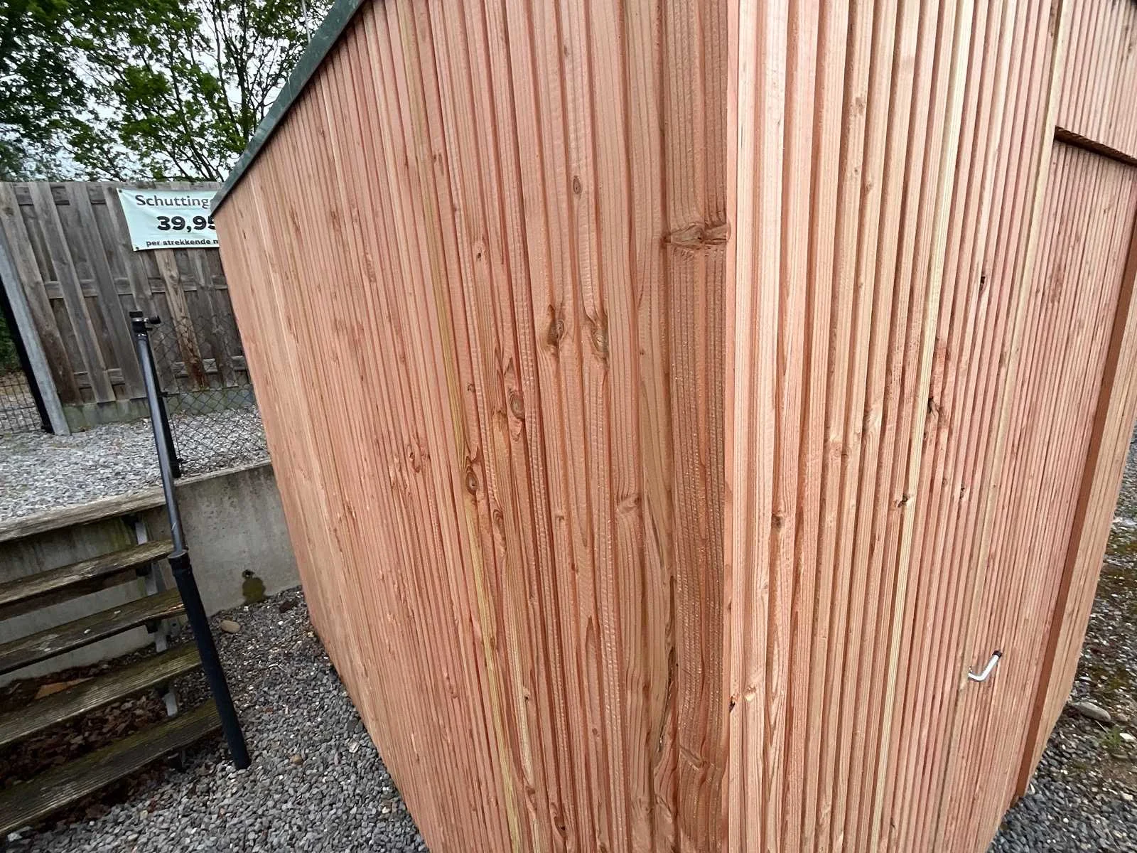 Modern Model Tuinhuis Kenmerken: De deur kan naar wens in de lange of korte zijde worden gemonteerd. Daarnaast kan de deur zowel aan de linker- als aan de rechterkant worden geplaatst. De draairichting kan naar links of naar rechts worden ingesteld. Materiaal: Palen: 12x12 cm Douglas Dakbalken: 5x15 cm Douglas Regelwerk: 5x7 cm Vuren Wanden: 2 cm dikke Triple Douglas planken Dakplanken: 1,8 cm dikke Douglas planken Dakbedekking: EPDM dakfolie met lijm en dakdoorvoer Daktrim: Aluminium Levering: Geheel geleverd als bouwpakket Afmetingen pakket: 120 x 100 x 300 cm Gewicht pakket: 900 kg Model: Tuinhuis Product type: Modern Gewicht: 900kg Lengte: 295cm Breedte: 295cm Hoogte: 240cm Materiaal: Douglas
