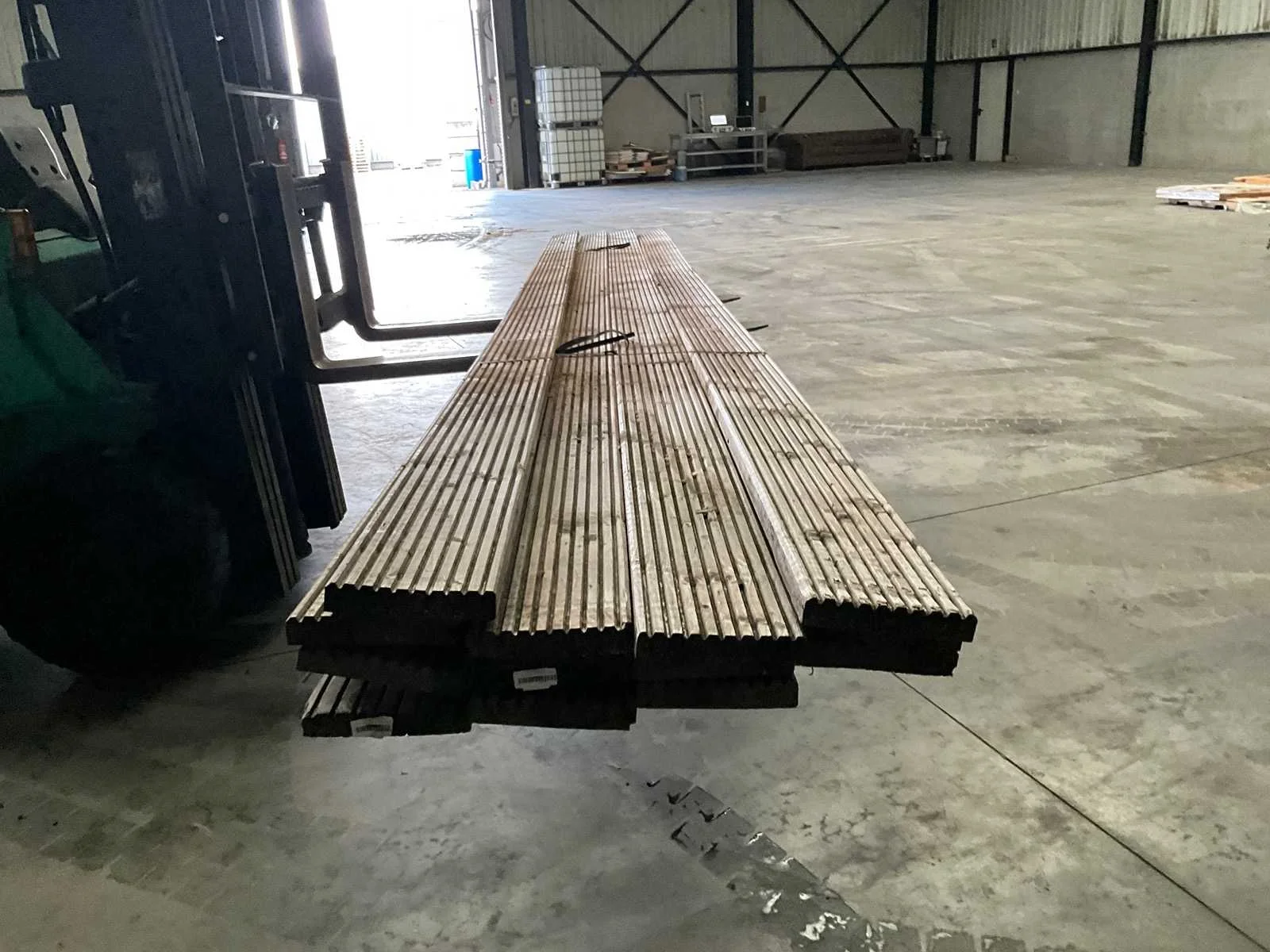 Douglas vlonderplank – licht vergrijsd – 500 x 14 x 2,8 cm – nieuw product. Zie foto's voor details. Houtsoort: Vlonderplank Materiaal: Douglas Lengte: 500cm Breedte: 140mm Hoogte: 28mm Kopmaat: 140x28 Gewicht: 200kg