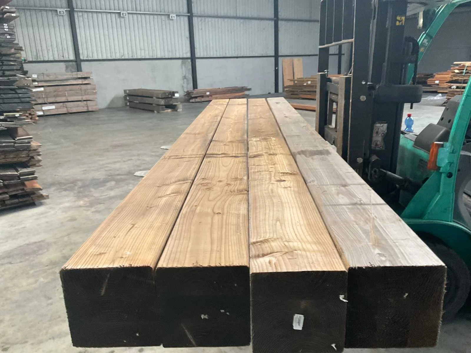 Douglas tuinpaal 400x20x20 cm, zie foto's voor details. Houtsoort: Douglas geïmpregneerd Materiaal: Tripelverlijmt Breedte: 200mm Hoogte: 200mm Kopmaat: 200x200 Gewicht: 300kg Totale afmeting Breedte: 400mm