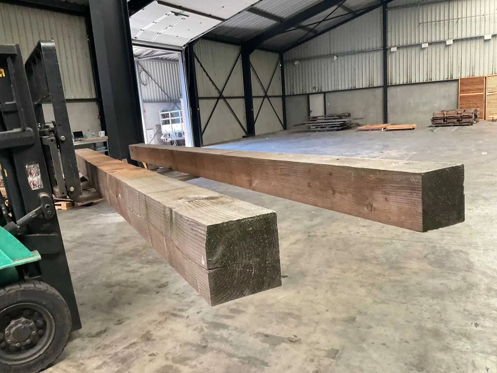 Douglas tuinpaal 500x20x20 cm, zie foto's voor details. Houtsoort: Douglas Breedte: 200mm Hoogte: 200mm Kopmaat: 200x200 Gewicht: 175kg Totale afmeting Breedte: 5000mm