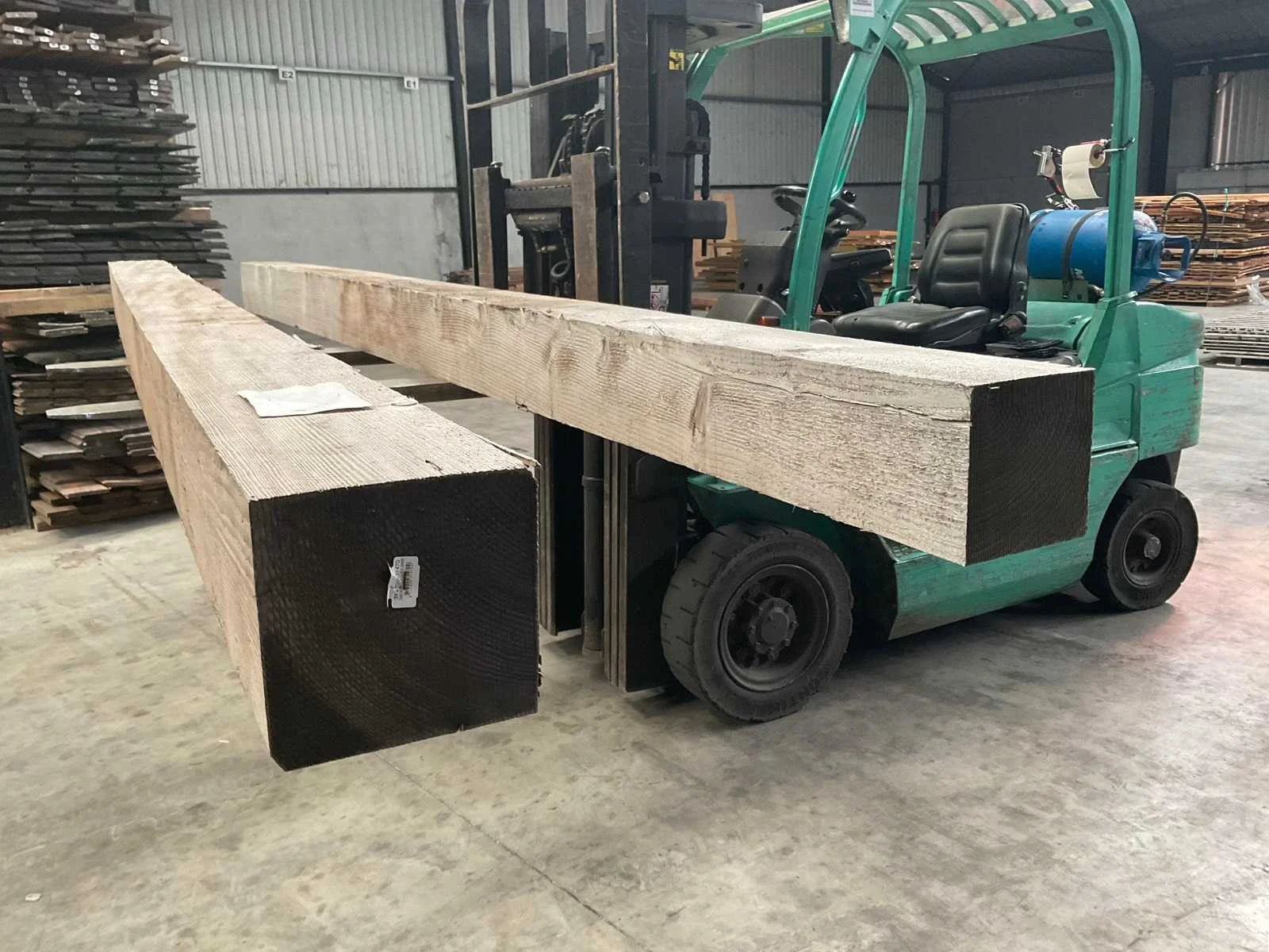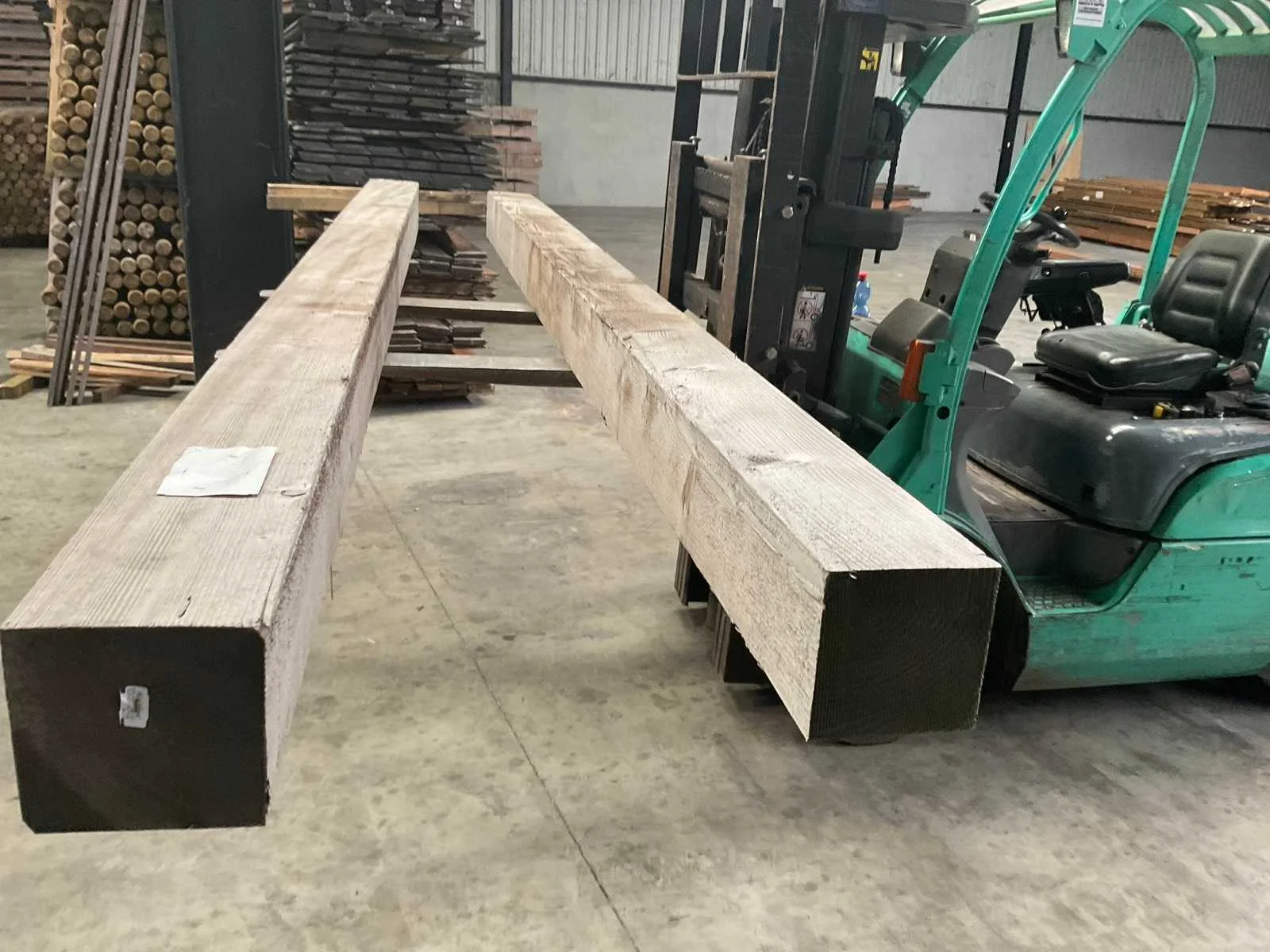 Douglas tuinpaal 400x20x20 cm, zie foto's voor details. Houtsoort: Douglas Breedte: 200mm Hoogte: 200mm Kopmaat: 200x200 Gewicht: 200kg Totale afmeting Breedte: 4000mm