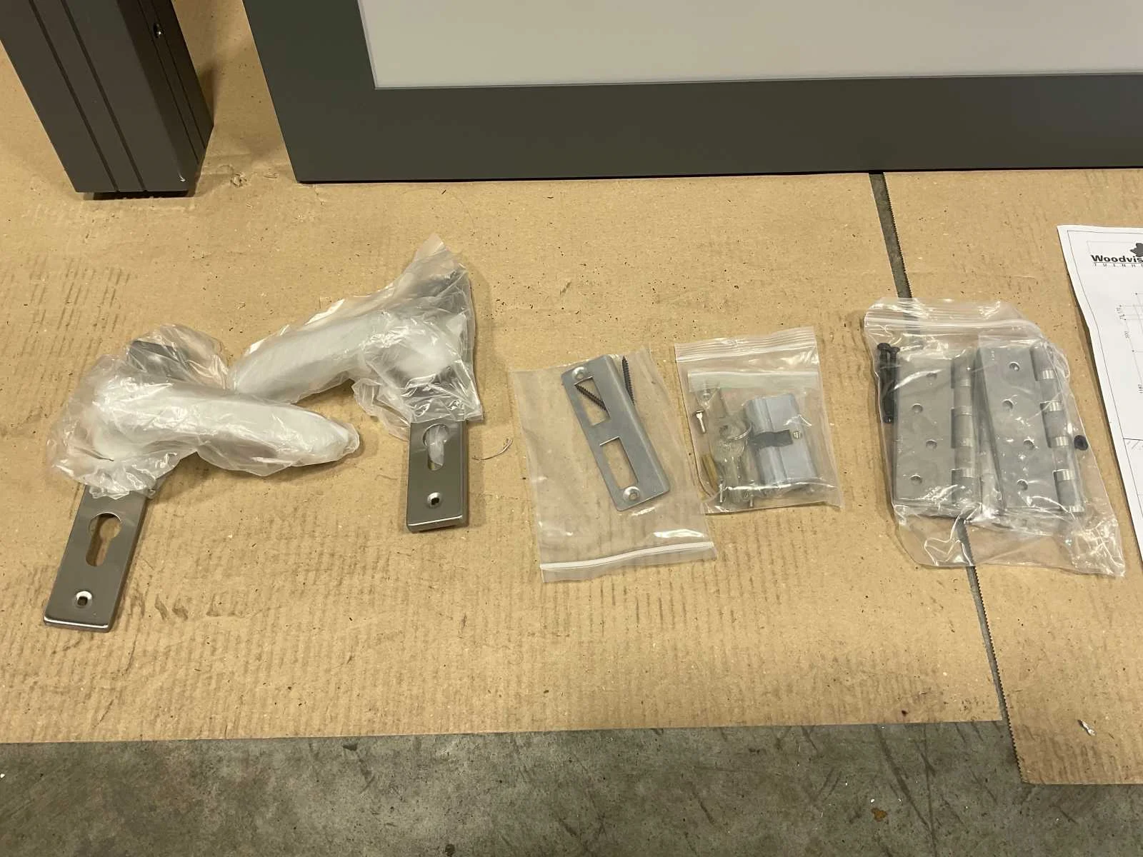 Kavel bevat: 1x Aluminium deur in aluminium frame (183 x 90 cm) 1x Hang- en sluitwerk Let op: Wordt geleverd ZONDER palen. Buitendeur: true Stomp: true Afmeting h: 1830mm Afmeting b: 930mm Aluminium: true Kleur: Lichtgrijs