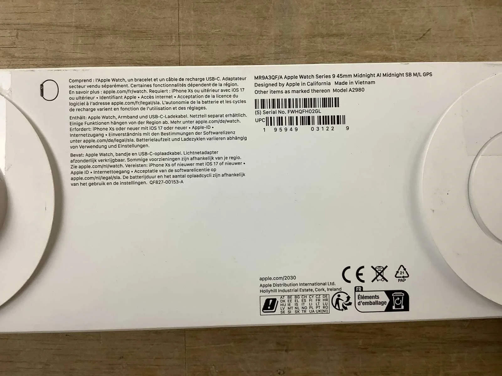 EAN: 195949031229. Dit betreft een gecontroleerd retourproduct getest op correcte werking. Er kunnen gebruikssporen zijn. Voor een goed beeld word er geadviseerd om gebruik te maken van de kijkdag om zo een goed beeld te krijgen van het product. Merk: Apple Model: Series 9 GPS: true Emergency button: true Voice control: true Navigatie: true Alarm functie: true Telefoon functie: true Touchscreen: true Near Field Communication (NFC): true Geïntegreerde wifi: true Apps installeren mogelijk: true Kleur: Midnight Aluminium