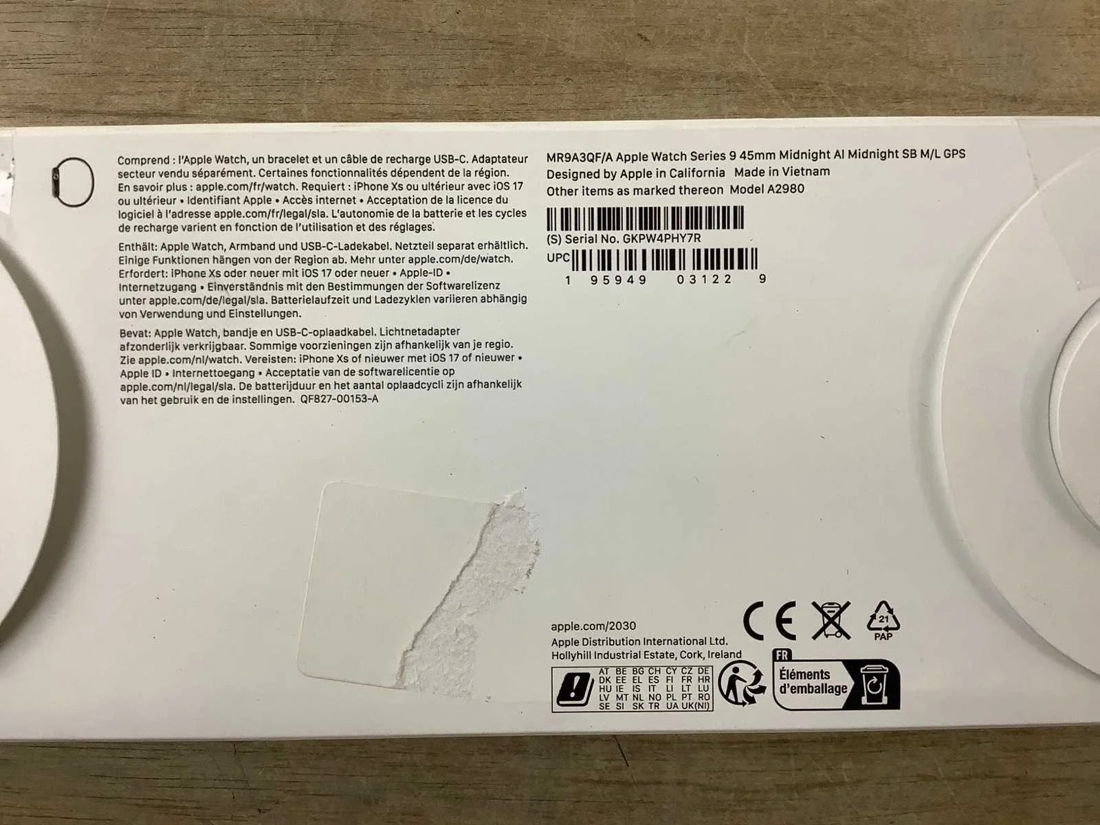 EAN: 195949031229. Dit betreft een gecontroleerd retourproduct getest op correcte werking. Er kunnen gebruikssporen zijn. Voor een goed beeld word er geadviseerd om gebruik te maken van de kijkdag om zo een goed beeld te krijgen van het product. Merk: Apple Model: Series 9 GPS: true Emergency button: true Voice control: true Navigatie: true Alarm functie: true Telefoon functie: true Touchscreen: true Near Field Communication (NFC): true Geïntegreerde wifi: true Apps installeren mogelijk: true Kleur: Midnight Aluminium