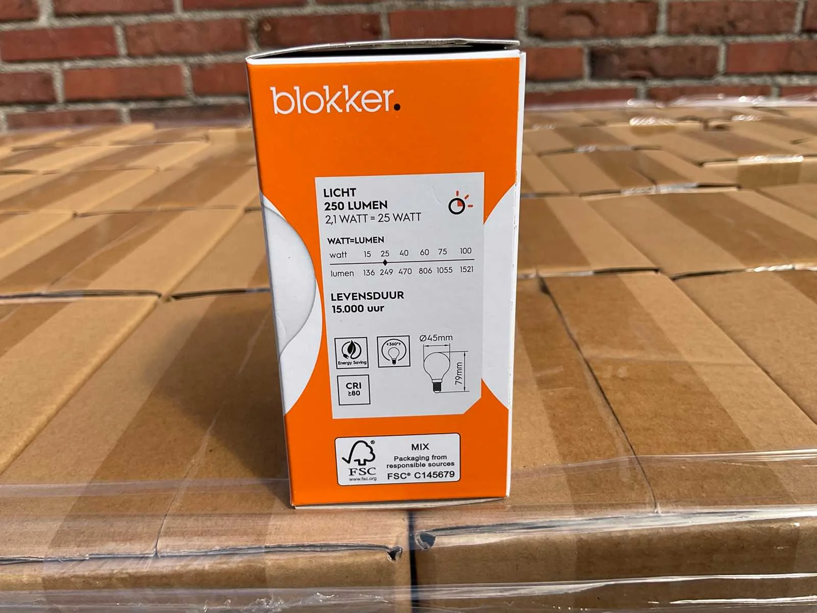De LED-lichtbron met E14-fitting heeft een vermogen van 2,1 watt en werkt op een spanning van 220-240 volt. De lamp produceert 250 lumen licht met een kleurtemperatuur van 2700 Kelvin, wat zorgt voor warm wit licht. Dankzij LED-technologie biedt de lamp directe lichtopbrengst en een langere levensduur dan traditionele gloeilampen. Let op: deze kavel betreft een voorraad van 1026, deze is verdeeld over 171 dozen waarin 6 stuks zitten. Model: LED Product type: lichtbron Vorm: kogel Spanning: 220-240V Kleurtemperatuur: 2700K Lichtbron: LED Lichtopbrengst: 250lm Diameter circa: 45mm Energielabel: E Fitting: E14 Wattage: 2,1W Kleur: wit Lengte: 4,5cm Breedte: 4,5cm Hoogte: 7,9cm