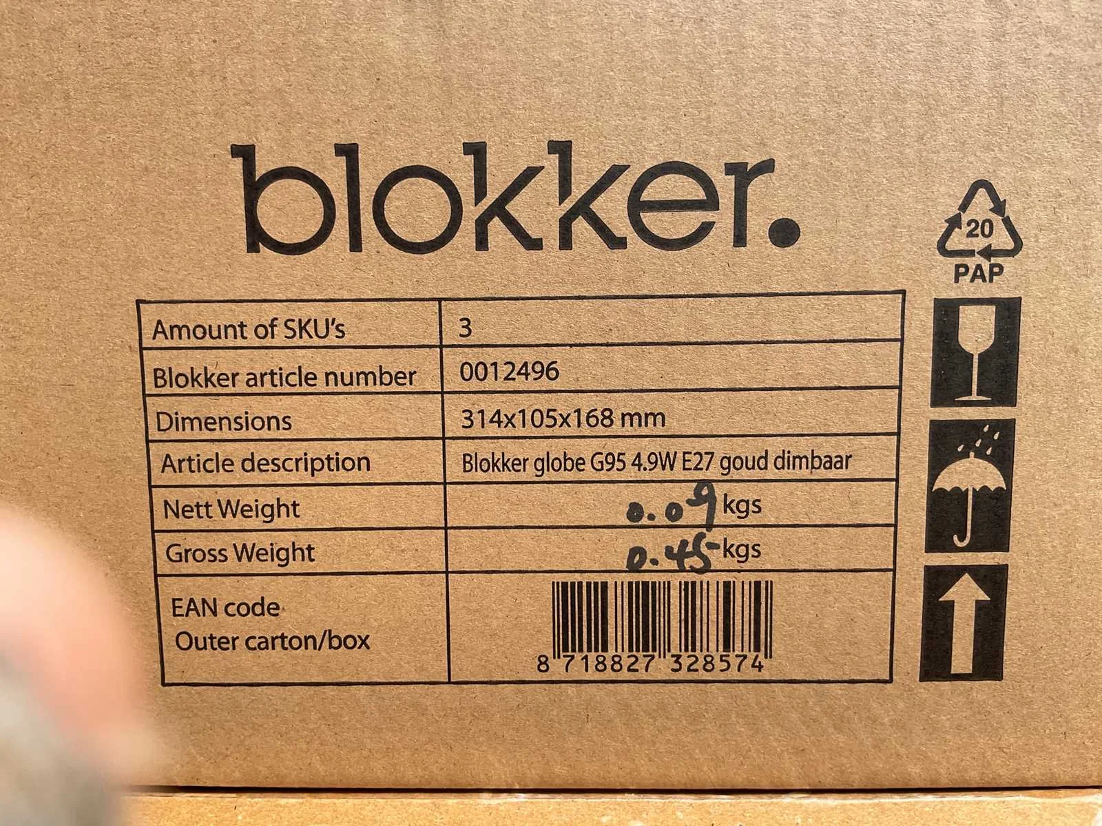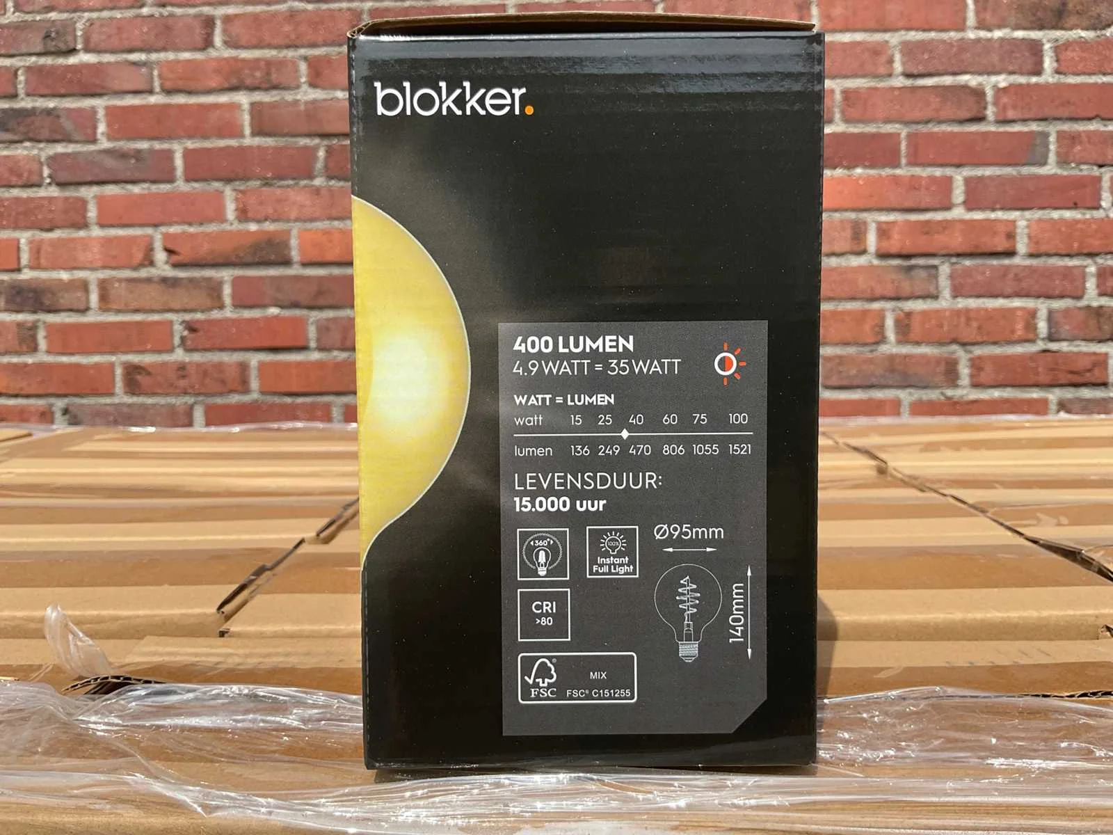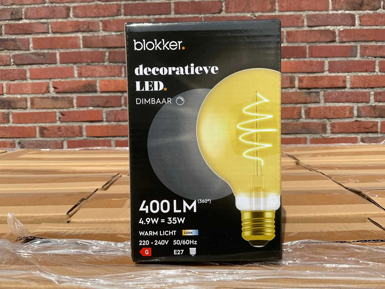 De LED-lichtbron met E27-fitting heeft een vermogen van 4,9 watt en werkt op een spanning van 220-240 volt. De lamp is dimbaar, heeft een lichtopbrengst van 400 lumen en een kleurtemperatuur van 2200 Kelvin, wat zorgt voor extra warm wit licht. Dankzij LED-technologie levert de lamp directe lichtopbrengst en heeft deze een langere levensduur dan traditionele gloeilampen. Let op, dit kavel heeft een totale voorraad van 375 lichtbronnen. Deze zijn verdeeld over 125 dozen van 3 stuks. Model: LED Product type: lichtbron Vorm: globe Spanning: 220-240V Kleurtemperatuur: 2200K Lichtbron: LED Lichtopbrengst: 400lm Diameter circa: 95mm Energielabel: G Fitting: E27 Dimbaar: true Wattage: 4,9W Kleur: goud Lengte: 9,5cm Breedte: 9,5cm Hoogte: 14cm