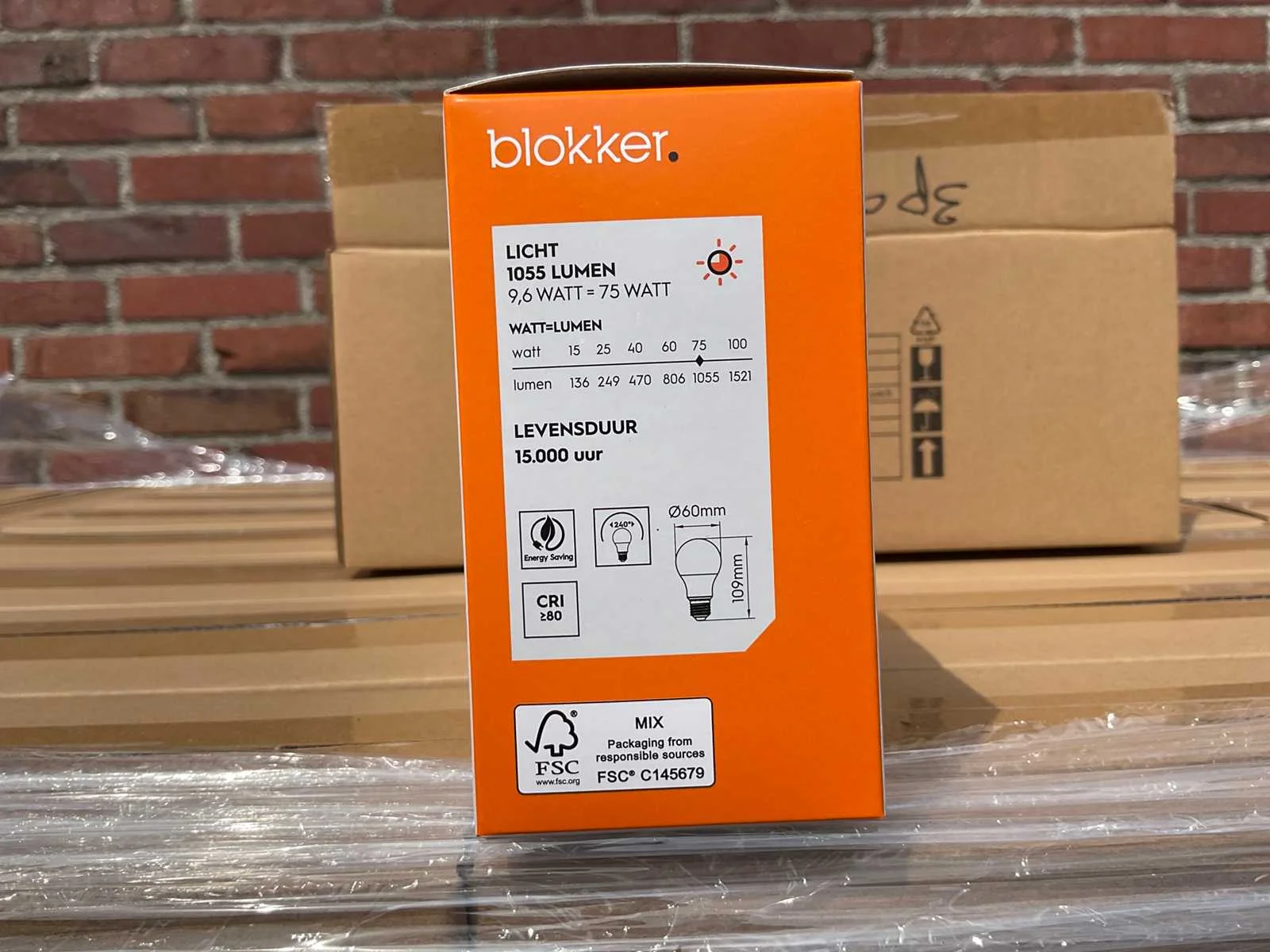 De LED-lichtbron 2-pack met E27-fitting heeft een vermogen van 9,6 watt per lamp en werkt op een spanning van 220-240 volt. Elke lamp levert 1055 lumen licht met een kleurtemperatuur van 2700 Kelvin, wat zorgt voor warm wit licht. Dankzij LED-technologie bieden de lampen directe lichtopbrengst en een langere levensduur dan traditionele gloeilampen. Let op: deze kavel betreft een voorraad van 1008 stuks 2-packs. Deze zijn verdeeld over 202 dozen, waarvan één doos niet volledig is gevuld. Omdat dit product een 2-pack betreft is er een totale voorraad van 2016 lichtbronnen. Model: 2-pack Product type: lichtbron Vorm: peer Spanning: 220-240V Kleurtemperatuur: 2700K Lichtbron: LED Lichtopbrengst: 1055lm Diameter circa: 60mm Energielabel: F Fitting: E27 Wattage: 9,6W Lengte: 6cm Breedte: 6cm Hoogte: 10,9cm
