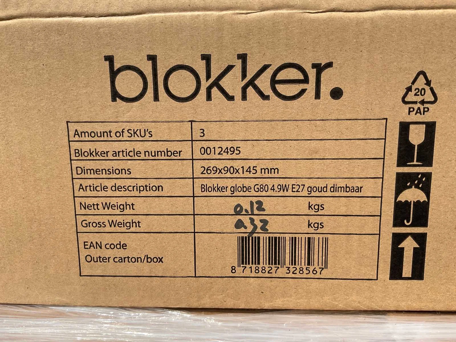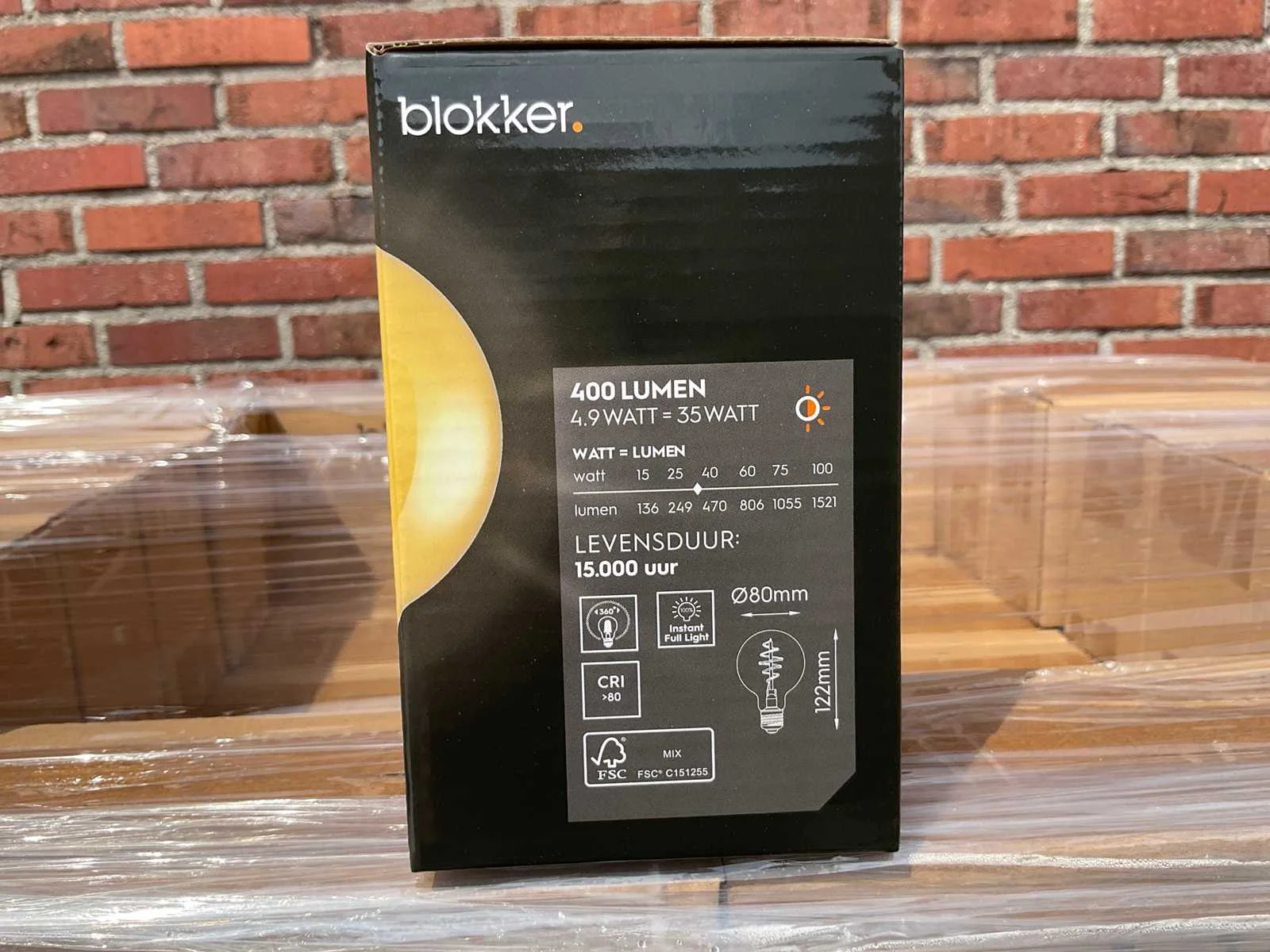 De LED-lichtbron met E27-fitting heeft een vermogen van 4,9 watt en werkt op een spanning van 220-240 volt. De lamp is dimbaar, heeft een lichtopbrengst van 400 lumen en een kleurtemperatuur van 2200 Kelvin, wat zorgt voor extra warm wit licht. Dankzij LED-technologie levert de lamp directe lichtopbrengst en heeft een langere levensduur dan traditionele gloeilampen. Let op, dit kavel heeft een totale voorraad van 477 lichtbronnen. Deze zijn verdeeld over 159 dozen van 3 stuks. Model: LED Product type: lichtbron Vorm: globe Spanning: 220-240V Kleurtemperatuur: 2200K Lichtbron: LED Lichtopbrengst: 400lm Diameter circa: 80mm Energielabel: G Fitting: E27 Dimbaar: true Wattage: 4,9W Kleur: goud Lengte: 8cm Breedte: 8cm Hoogte: 12,2cm