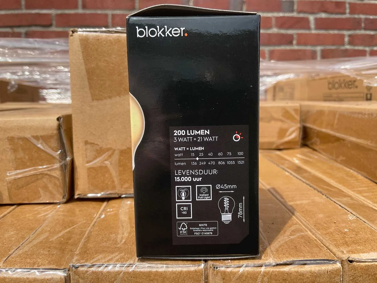 De decoratieve LED-lichtbron met E27-fitting heeft een vermogen van 3 watt en werkt op een spanning van 220-240 volt. De lamp is dimbaar, heeft een kleurtemperatuur van 2200 Kelvin voor extra warm wit licht en valt in energielabel G. Dankzij LED-technologie levert de lamp directe lichtopbrengst en heeft een langere levensduur dan traditionele gloeilampen. Let op, dit kavel heeft een totale voorraad van 4640 lichtbronnen. Deze zijn verdeeld over 928 dozen van 5 stuks. Model: LED lichtbron Vorm: kogellamp Spanning: 220-240V Kleurtemperatuur: 2200K Lichtbron: LED Lichtopbrengst: 200lm Diameter circa: 45 Energielabel: G Fitting: E27 Dimbaar: true Wattage: 3W Lengte: 4,5cm Breedte: 4,5cm Hoogte: 7,8cm