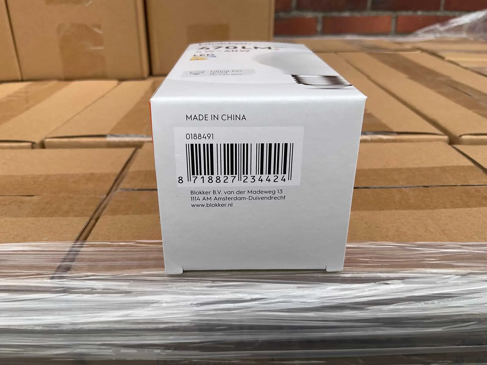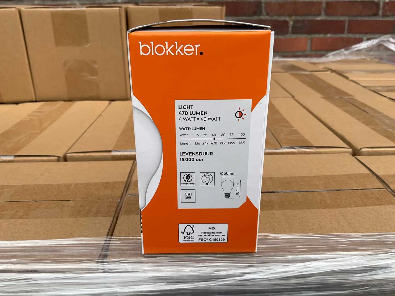 De LED-lichtbron met E27-fitting heeft een vermogen van 4 watt en werkt op een spanning van 220-240 volt. De lamp levert 470 lumen licht en biedt dankzij LED-technologie directe lichtopbrengst, een lager energieverbruik en een langere levensduur dan traditionele gloeilampen. Let op: deze kavel betreft een voorraad van 1704, deze is verdeeld in 284 dozen met 6 stuks. Model: LED Product type: lichtbron Vorm: peer Spanning: 220-240V Kleurtemperatuur: 2700K Lichtbron: LED Lichtopbrengst: 470lm Diameter circa: 60mm Energielabel: E Fitting: E27 Wattage: 4W Kleur: wit Lengte: 6cm Breedte: 6cm Hoogte: 10,4cm
