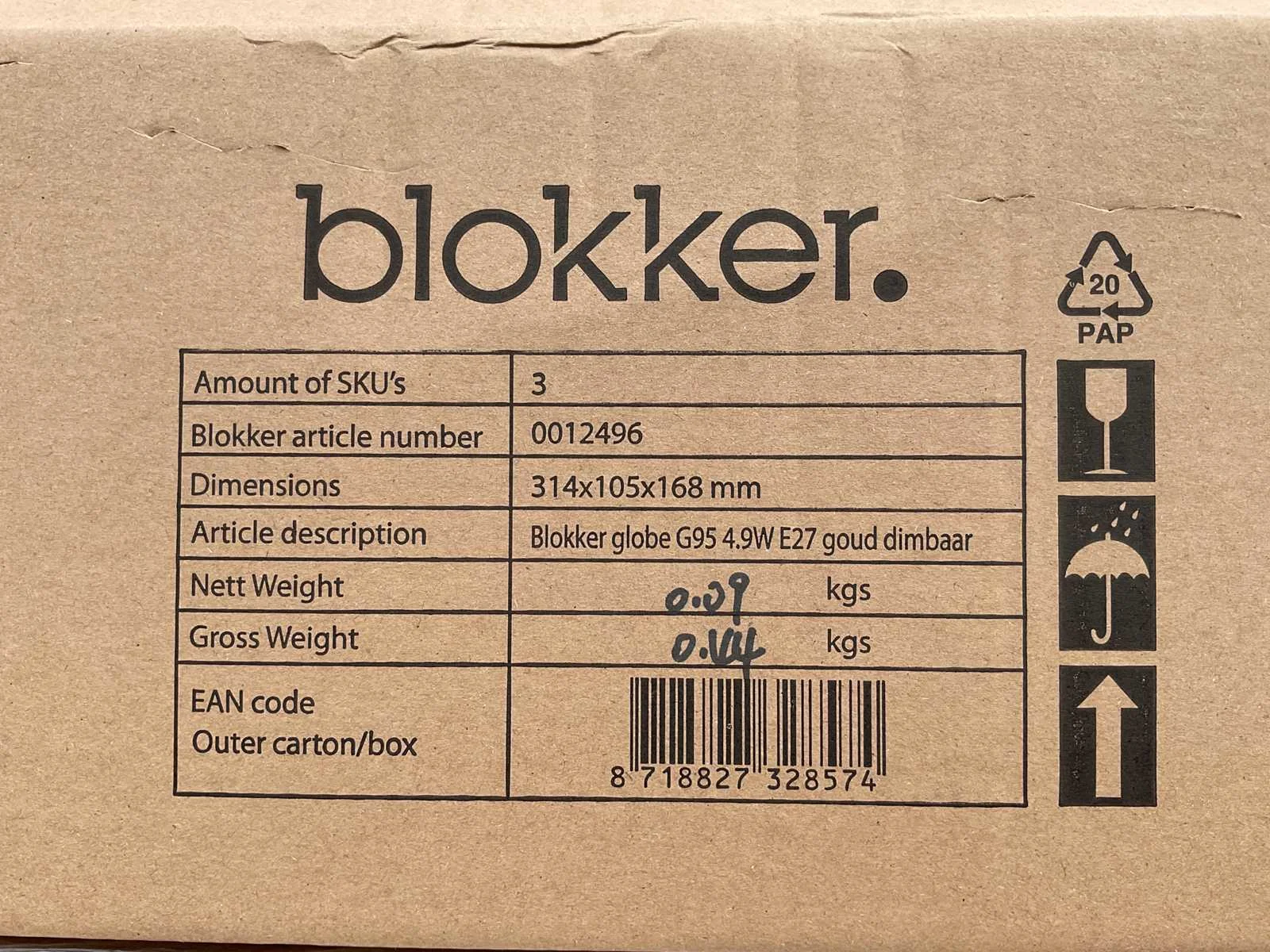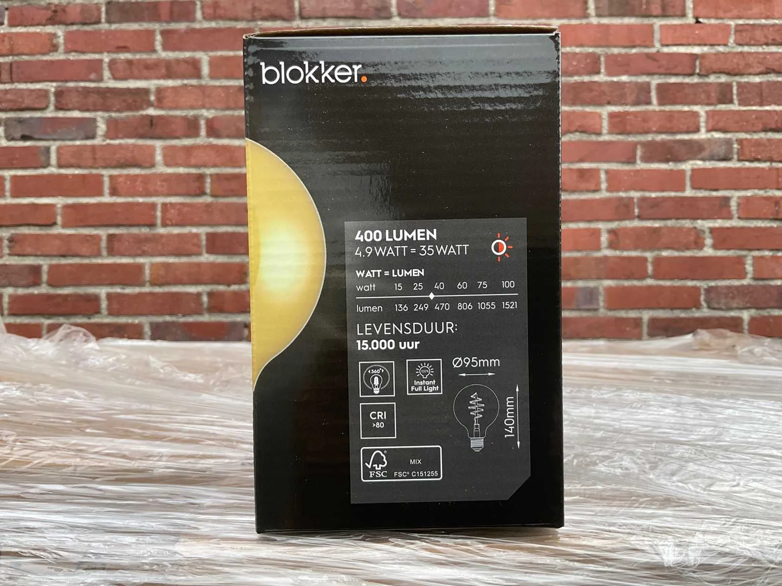 De LED lichtbron met E27-fitting heeft een vermogen van 4,9 watt en werkt op een spanning van 220-240 volt. De lamp is dimbaar en geeft extra warm licht met een kleurtemperatuur van 2200 Kelvin. Met een lichtopbrengst van 400 lumen is deze lichtbron geschikt voor sfeerverlichting. De lamp heeft energielabel G en vormt een energiezuinige vervanging voor traditionele gloeilampen. Let op, dit kavel heeft een totale voorraad van 750 lichtbronnen. Deze zijn verdeeld over 250 dozen van 3 stuks. Model: G95 Product type: lichtbron Vorm: globe Spanning: 220-240V Kleurtemperatuur: 2200K Lichtbron: LED Lichtopbrengst: 400lm Diameter circa: 95mm Energielabel: G Fitting: E27 Dimbaar: true Wattage: 4,9W Kleur: goud Lengte: 9,5cm Breedte: 9,5cm Hoogte: 14cm