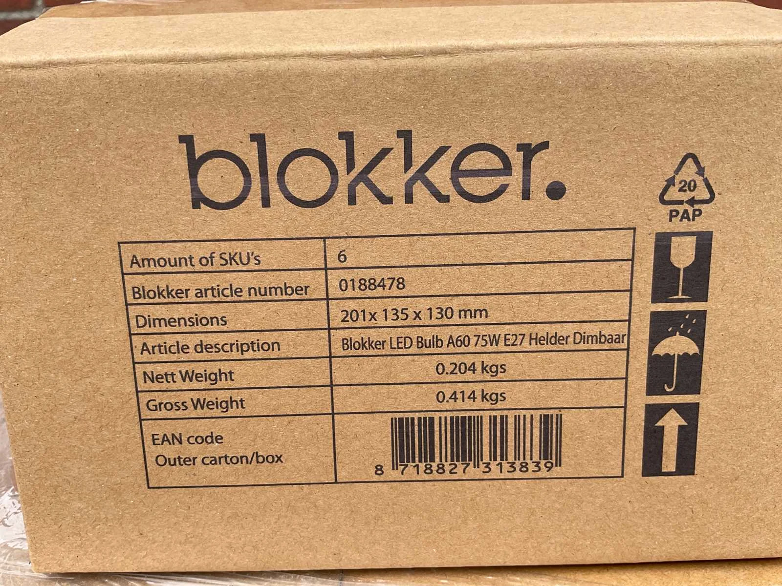 LED lichtbron met E27-fitting heeft een vermogen van 7,8 watt per lamp en werkt op een spanning van 220-240 volt. De lamp geeft warm wit licht met een kleurtemperatuur van 2700 Kelvin en een lichtopbrengst van 1055 lumen. De lichtbron heeft energielabel D en is geschikt voor gebruik in armaturen met E27-fitting. Let op, dit kavel heeft een totale voorraad van 2064 lichtbronnen. Deze zijn verdeeld over 344 dozen van 6 stuks. Model: LED Product type: lichtbron Vorm: peerlamp Spanning: 220-240V Kleurtemperatuur: 2700K Lichtbron: LED Lichtopbrengst: 1055lm Diameter circa: 60mm Energielabel: D Fitting: E27 Wattage: 7,8W Lengte: 6cm Breedte: 6cm Hoogte: 10,4cm
