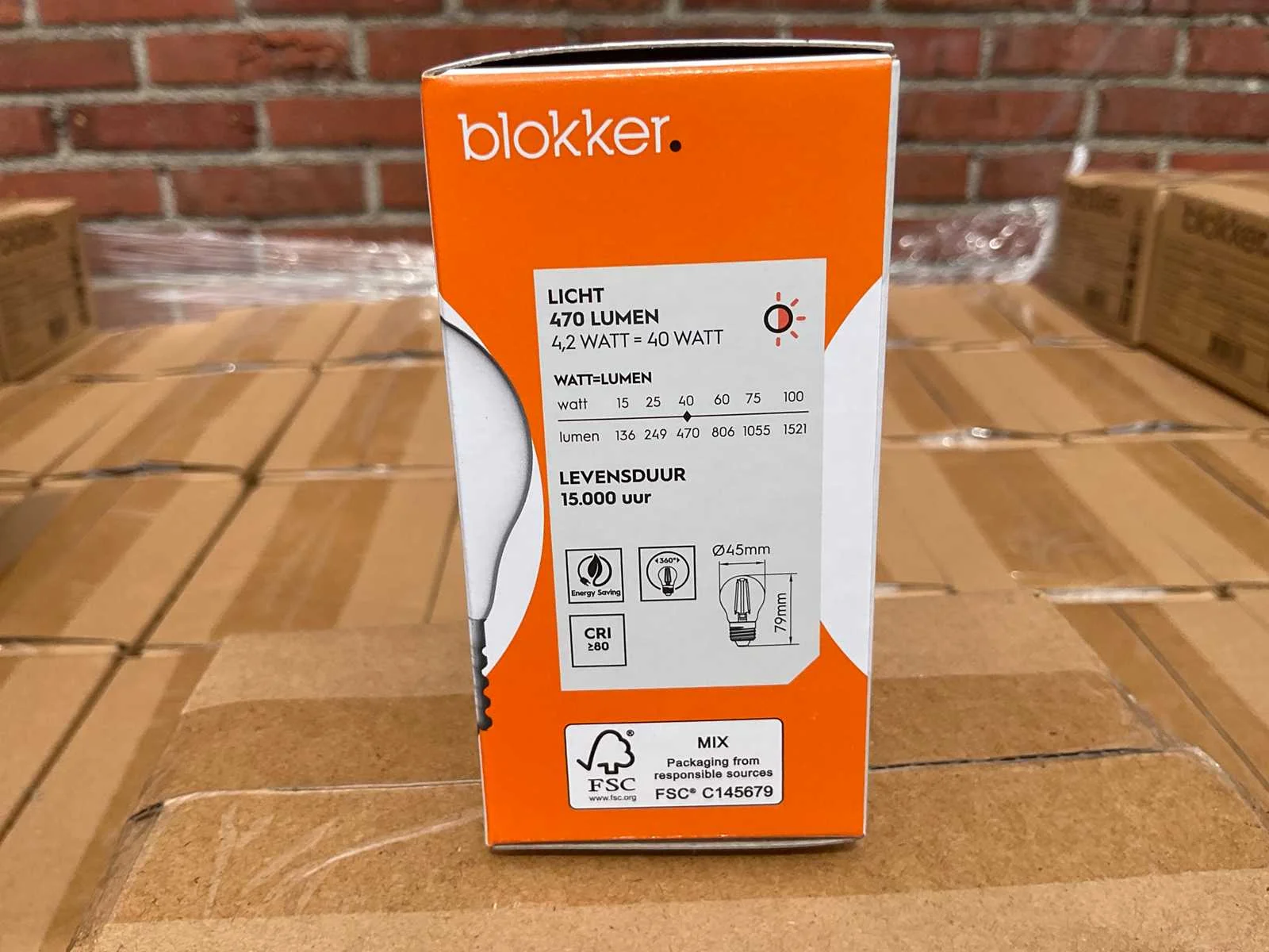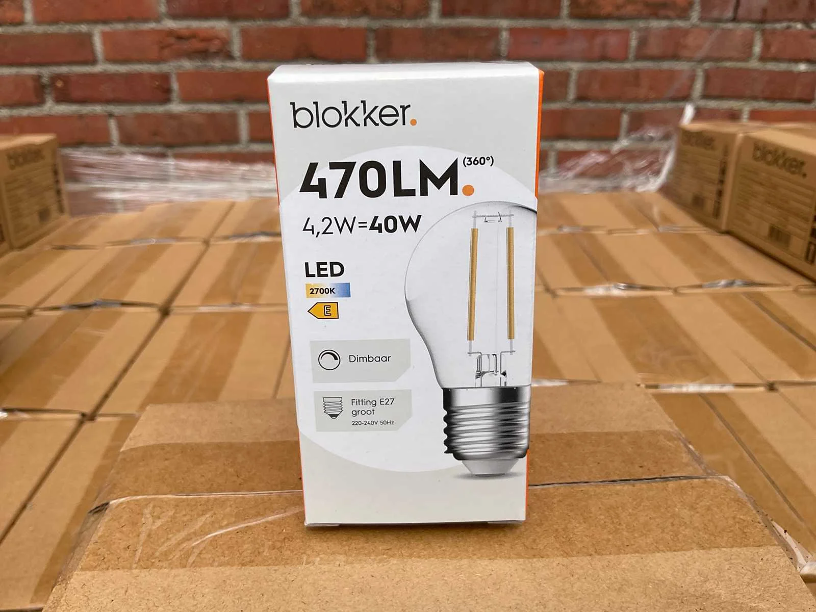 De LED-lichtbron met E27-fitting heeft een vermogen van 4,2 watt, is dimbaar en werkt op een spanning van 220-240 volt. Het energielabel van deze lamp is E. De lamp levert 470 lumen licht met een kleurtemperatuur van 2700 Kelvin, wat zorgt voor warm wit licht. Dankzij de LED-technologie biedt de lamp directe lichtopbrengst en een langere levensduur dan traditionele gloeilampen. Let op, dit kavel heeft een totale voorraad van 1152 lichtbronnen. Deze zijn verdeeld over 192 dozen van 6 stuks. Model: LED Product type: lichtbron Vorm: kogellamp Spanning: 220-240V Kleurtemperatuur: 2700K Lichtbron: LED Lichtopbrengst: 470lm Diameter circa: 45mm Energielabel: E Fitting: E27 Dimbaar: true Wattage: 4,2W Lengte: 4,5cm Breedte: 4,5cm Hoogte: 7,9cm