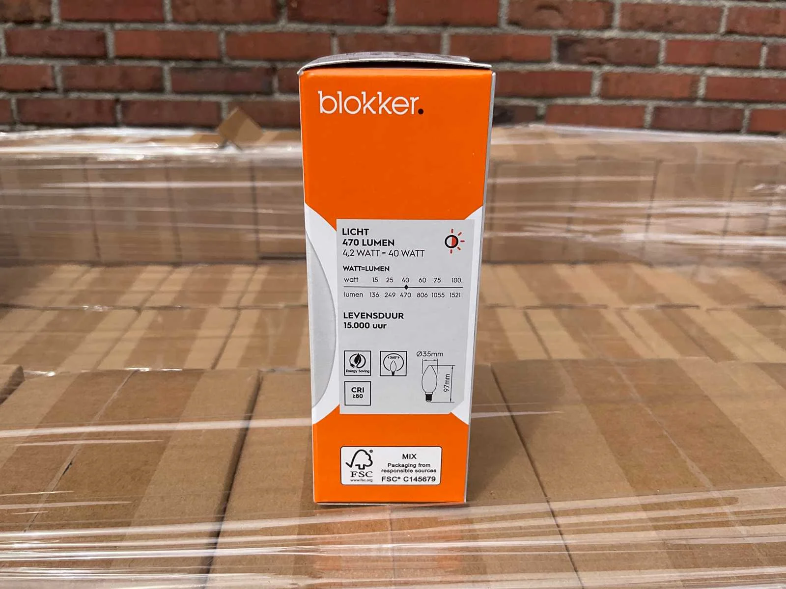 De LED-lichtbron met E14-fitting heeft een vermogen van 4,2 watt, is dimbaar en werkt op een spanning van 220-240 volt. Het energielabel van deze lamp is E. De lamp levert 470 lumen licht met een kleurtemperatuur van 700 Kelvin, wat zorgt voor warm wit licht. Dankzij de LED-technologie biedt de lamp directe lichtopbrengst en een langere levensduur dan traditionele gloeilampen. Let op, dit kavel heeft een totale voorraad van 664 lichtbronnen. Deze zijn verdeeld over 111 dozen van 6 stuks, waarvan één doos niet volledig is gevuld. Model: LED Product type: lichtbron Vorm: kaars Spanning: 220-240V Kleurtemperatuur: 2700K Lichtbron: LED Lichtopbrengst: 470lm Diameter circa: 35mm Energielabel: E Fitting: E14 Dimbaar: true Wattage: 4,2W Lengte: 3,5cm Breedte: 3,5cm Hoogte: 9,7cm