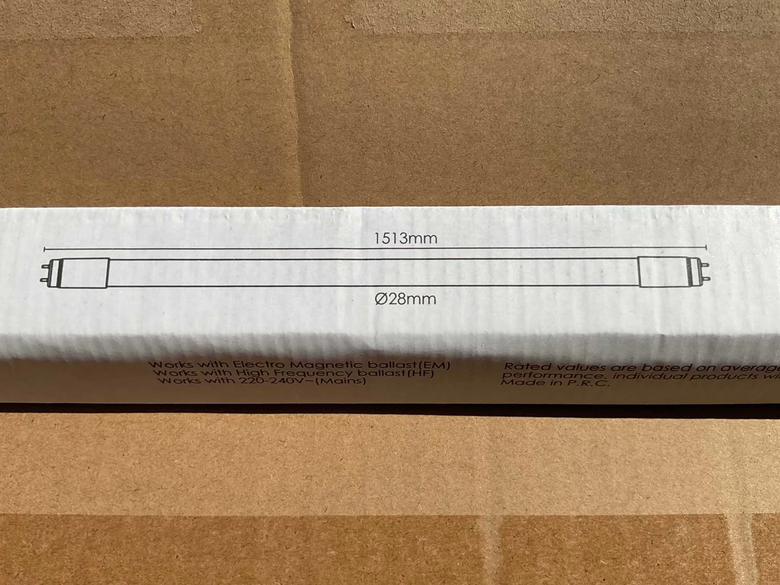 De Eco-Getic LED Tube T8 is een energiezuinige vervanger voor conventionele TL-buizen. Met een lengte van 1513 mm en een warmwitte lichtkleur (3000K). Type: LED Tube T8. Lengte: 1513 mm (Ø28 mm). Vermogen: 24W. Lichtopbrengst: 3250 lumen. Lichtkleur: 3000K warmwit. Fitting: G13. Kleurweergave (CRI): Ra ≥80. Levensduur: 50.000 uur. Aantal schakelcycli: 100.000x Temperatuurbereik: -30°C tot +45°C Instant full light: direct vol licht zonder opwarmtijd. Compatibel met conventionele voorschakelapparatuur (EM), elektronische voorschakelapparatuur (HF) en directe netspanning (Mains). Let op, dit kavel heeft een totale voorraad van 400 Led Tubes. Deze zijn verdeeld over 20 dozen van 20 stuks. Merk: Eco-getic Model: T8 Product type: Led Tube Vorm: rond Spanning: 220-240V Kleurtemperatuur: 3000K Lichtbron: LED Lichtopbrengst: 3250lm Diameter circa: 28mm Fitting: G13 Wattage: 24W Lengte: 151,3cm Breedte: 2,8cm Hoogte: 2,8cm Materiaal: aluminium, kunststof