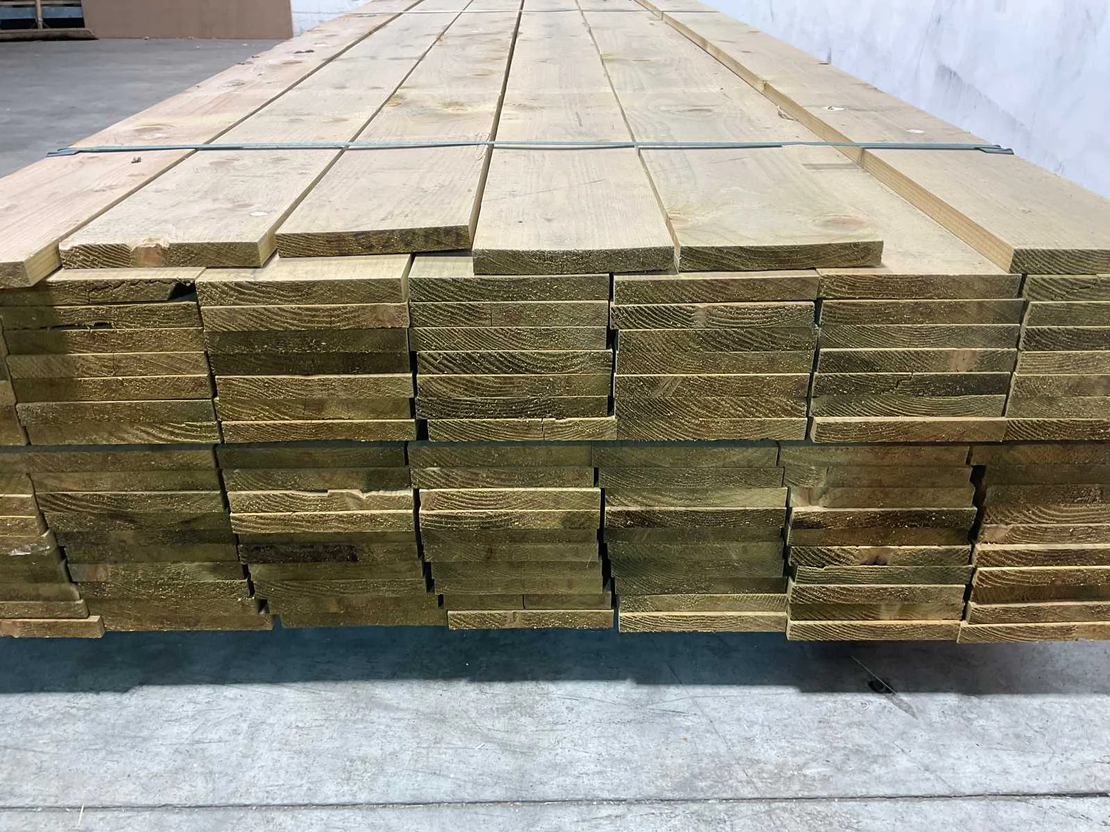 Vuren plank geschaafd geïmpregneerd 390x15x2,2 cm (96x)
