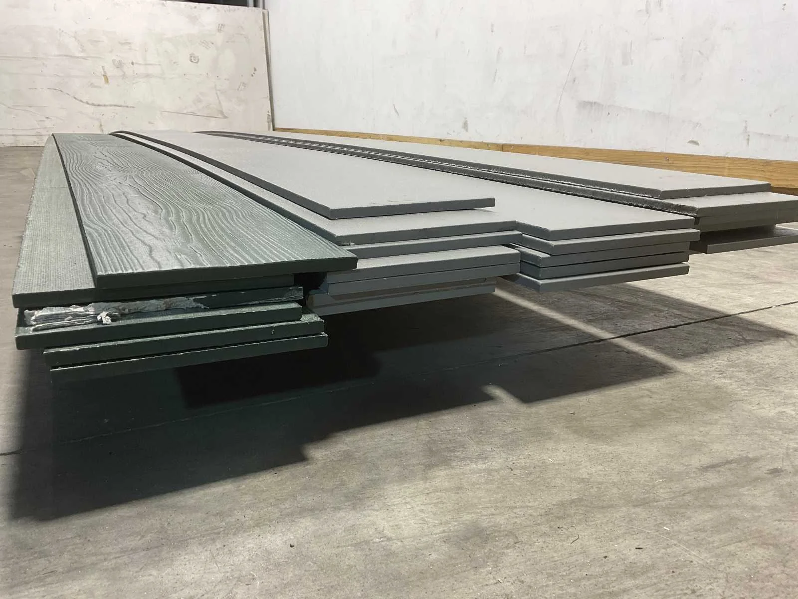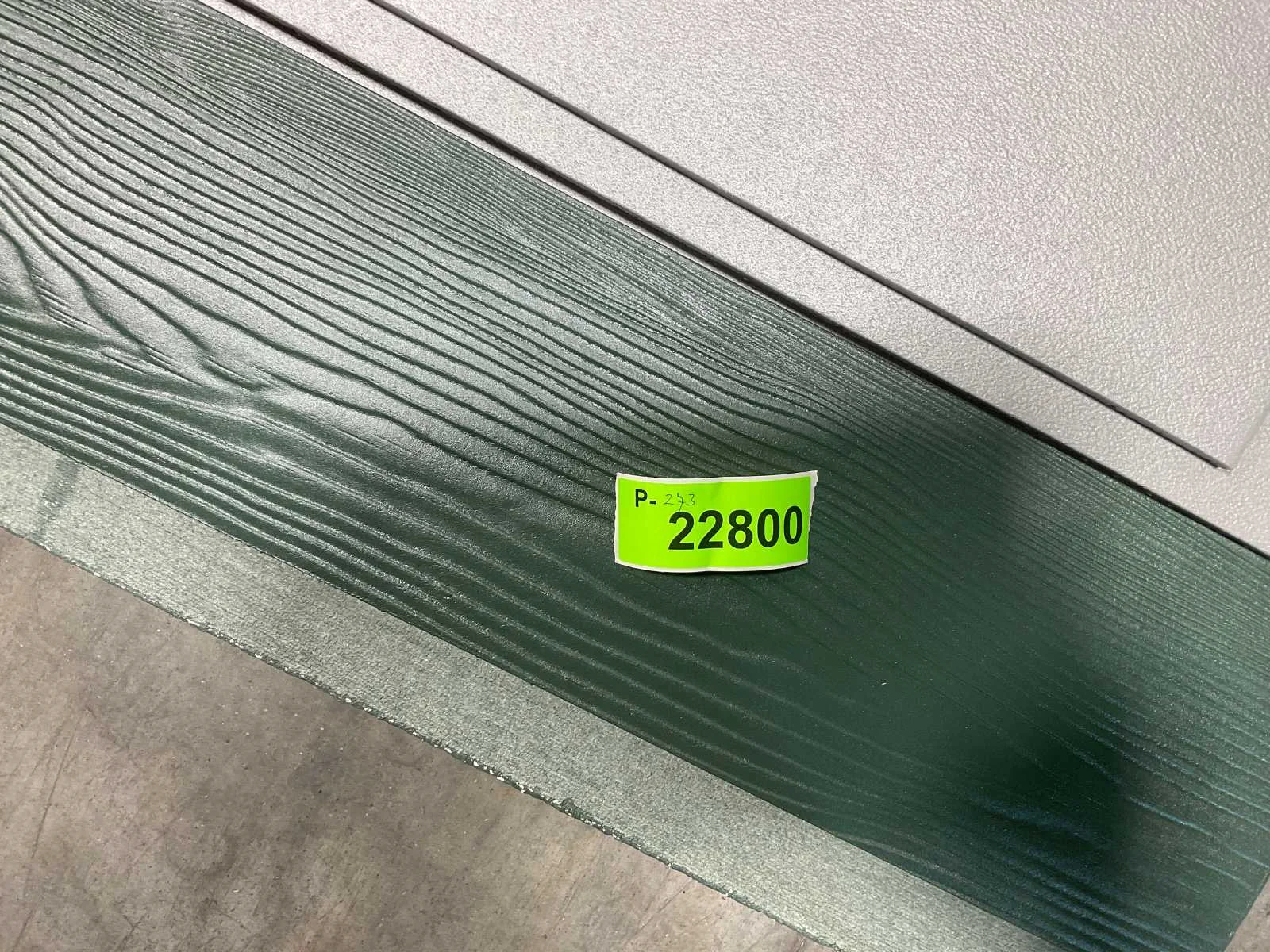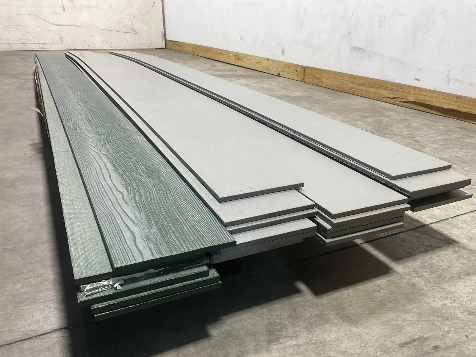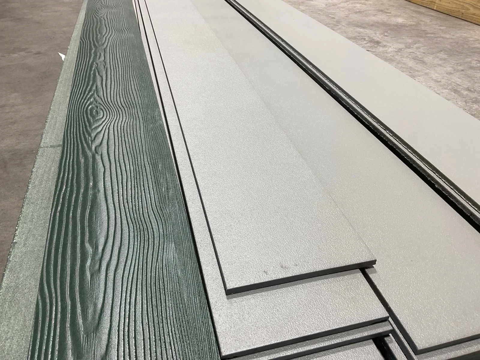 Partij vezelcementstroken van Lap Wood en Lap Smooth. Groen en grijs. Zie foto's voor details. 3600x186x12 mm Merk: Cedral Model: Lap Wood/Smooth Product type: Gevelstrook Lengte: 360cm Breedte: 18.6cm Hoogte: 1.2cm Materiaal: Cementvezel