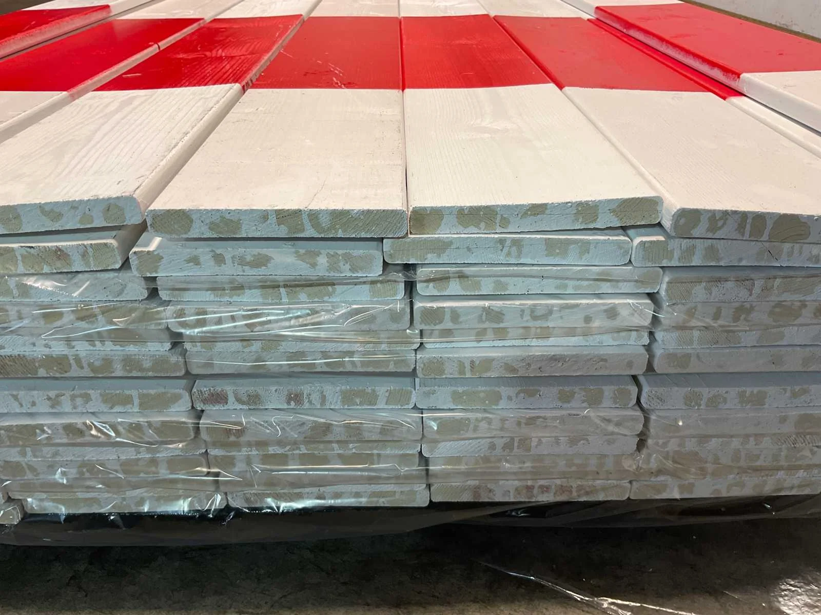 Vurenhouten schrikplanken rood/wit geschaafd, met een afmeting van 480 x 14,5 x 1,8 cm per stuk. Model: schrikplank Product type: geschaafd Kleur: rood, wit Lengte: 480cm Breedte: 14,5cm Hoogte: 1,8cm Materiaal: Vurenhout