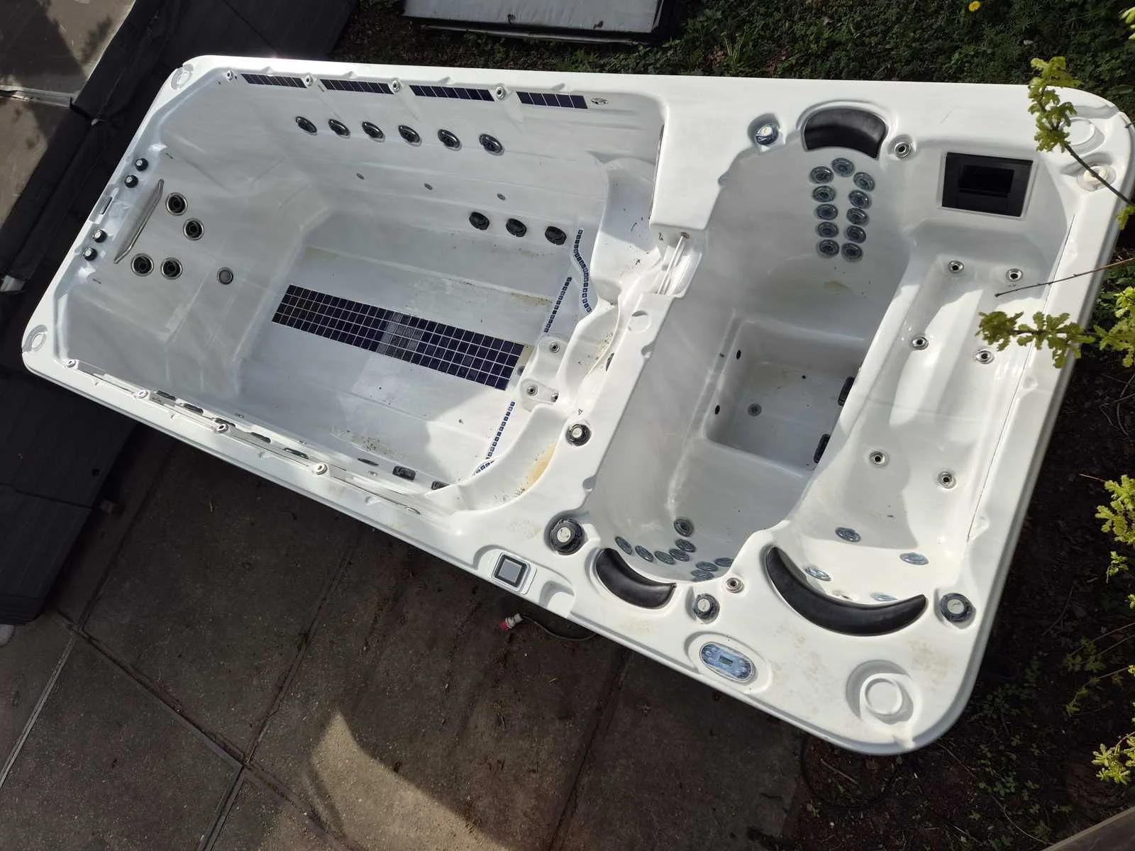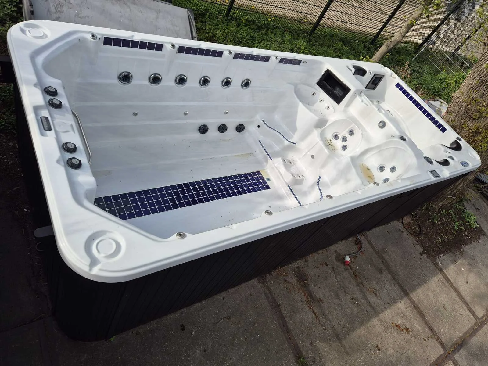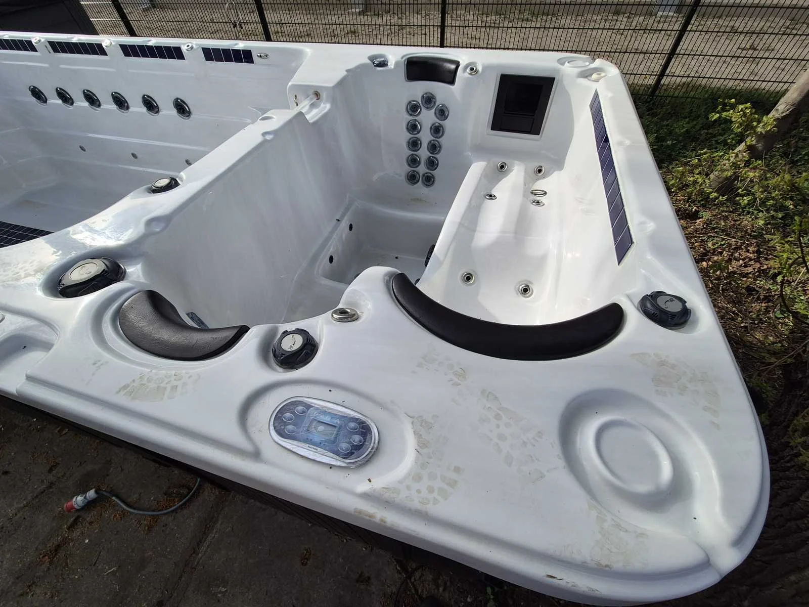 Voorzien van grote zwem jets om tegen in te zwemmen voor top sport; 5 zitplaatsen en 1 ligplaats; kunststof omkasting; Amerikaanse besturingssysteem; led verlichting; dubbel cabine zwemspa; afzonderlijk van elkaar temperatuur in te stellen; Niet getest op functioneren (Marge, geen BTW) Merk: Balboa Model: 15 persoons Product type: Dubbele cabine Spanning: 380V Verlichting: Ja Jets: 67 Aantal personen: 15 Lengte: 560cm Breedte: 230cm Hoogte: 136cm