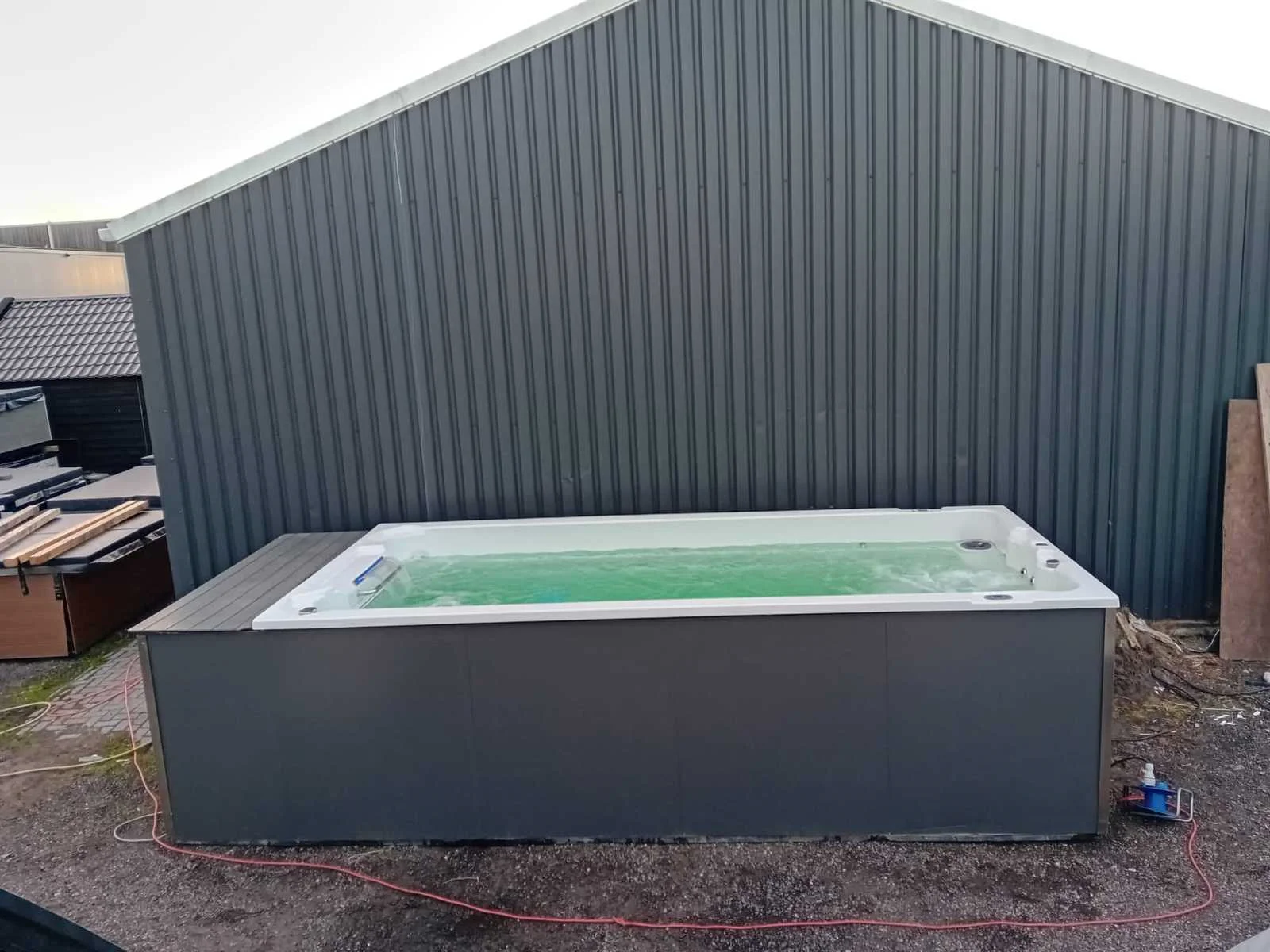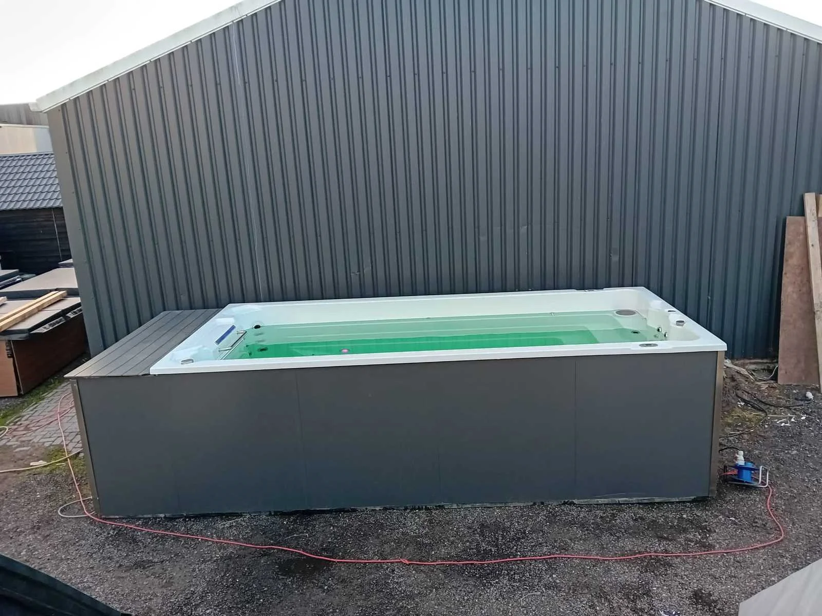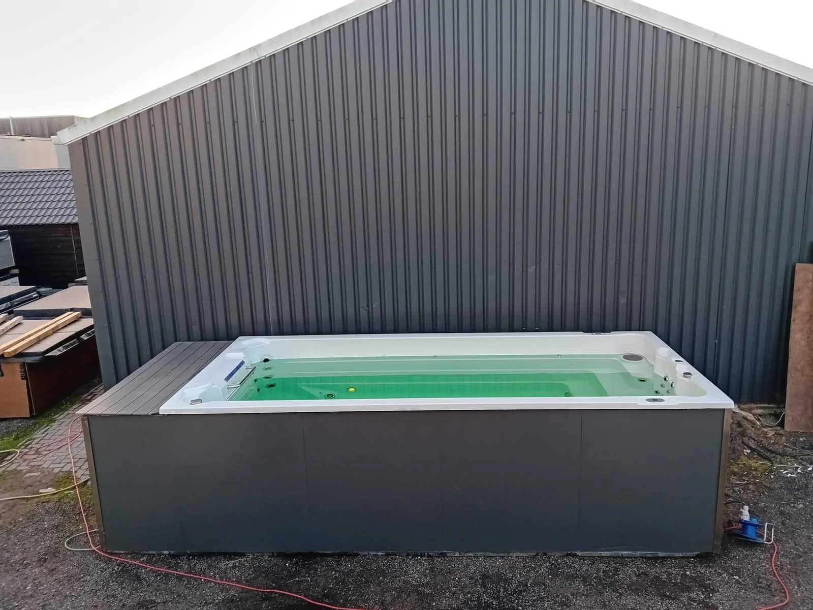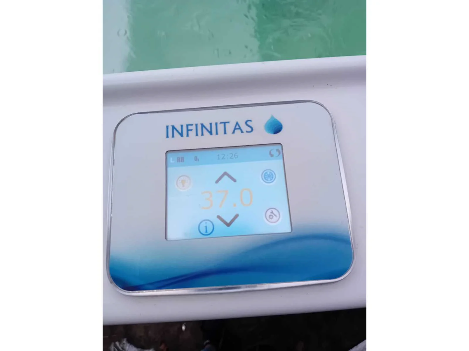 Voorzien van waterval; zwemjets voor top sporters; goed reiniging systeem (Marge, geen BTW) Merk: Infinitas Model: 15 persoons Spanning: 380V Verlichting: Ja Pompen: 8 Jets: 38 Aantal personen: 15 Lengte: 580cm Breedte: 225cm Hoogte: 150cm