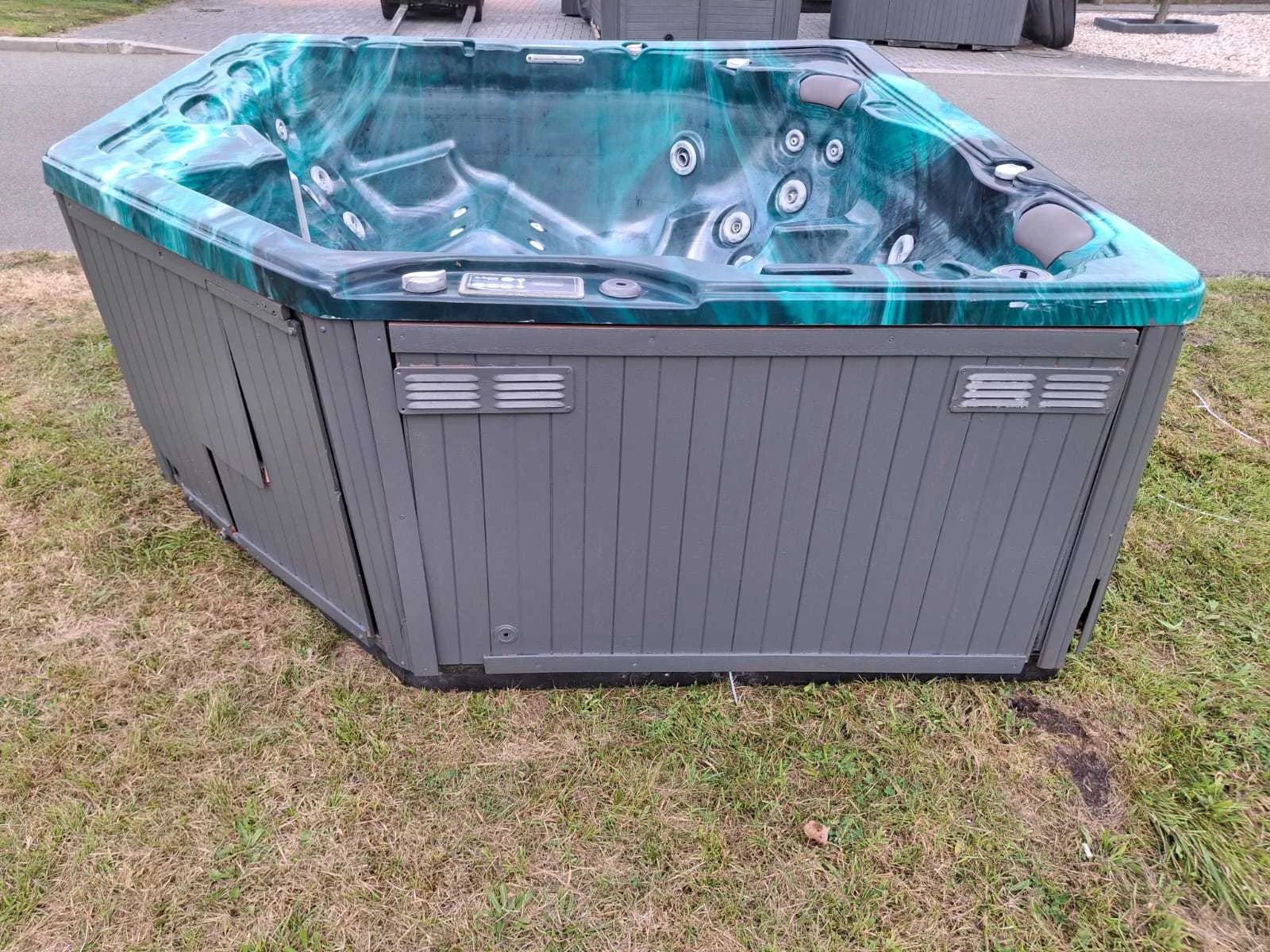 Voorzien van deels kunststof omkasting; 2 ligplaatsen 3 zitplaatsen; waterval; automatisch filtersysteem; Niet getest op functioneren (Marge, geen BTW) Merk: Reflection Spa Model: 5 persoons Product type: Amerikaans Verlichting: Ja Jets: 26 Aantal personen: 5 Lengte: 230cm Breedte: 230cm Hoogte: 99cm
