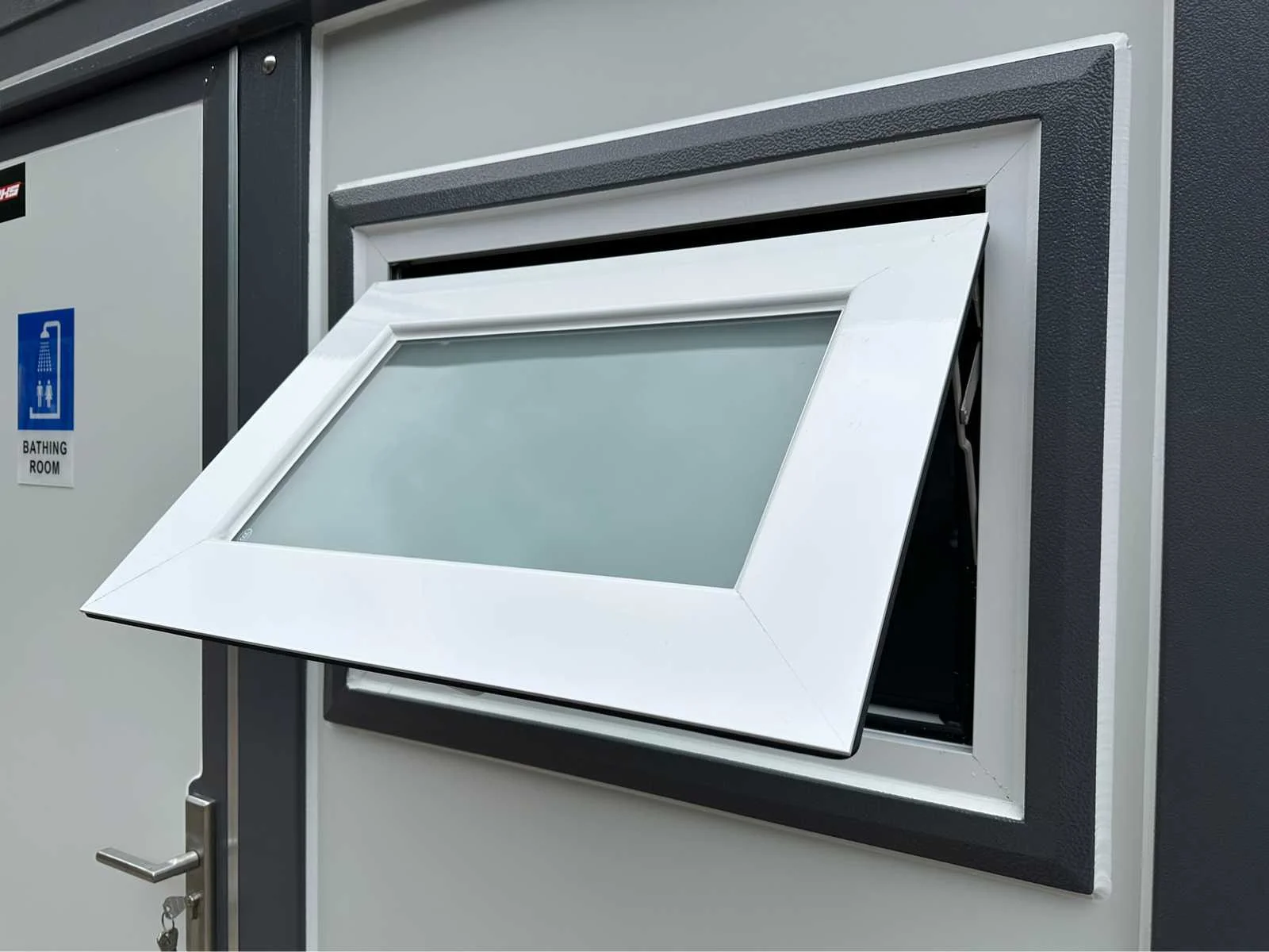 V.V. douche; wastafel met spiegelkast; 230 Volt aansluiting; ventilatiesysteem; plafondverlichting; afsluitbaar met sleutel en knopcilinder; lepelgaten en hijsogen; ongebruikt Merk: Stahlworks Type: Deluxe Bouwjaar: 2025 Aantal ramen: 1 Aantal wastafels: 1 Aantal douches: 1
